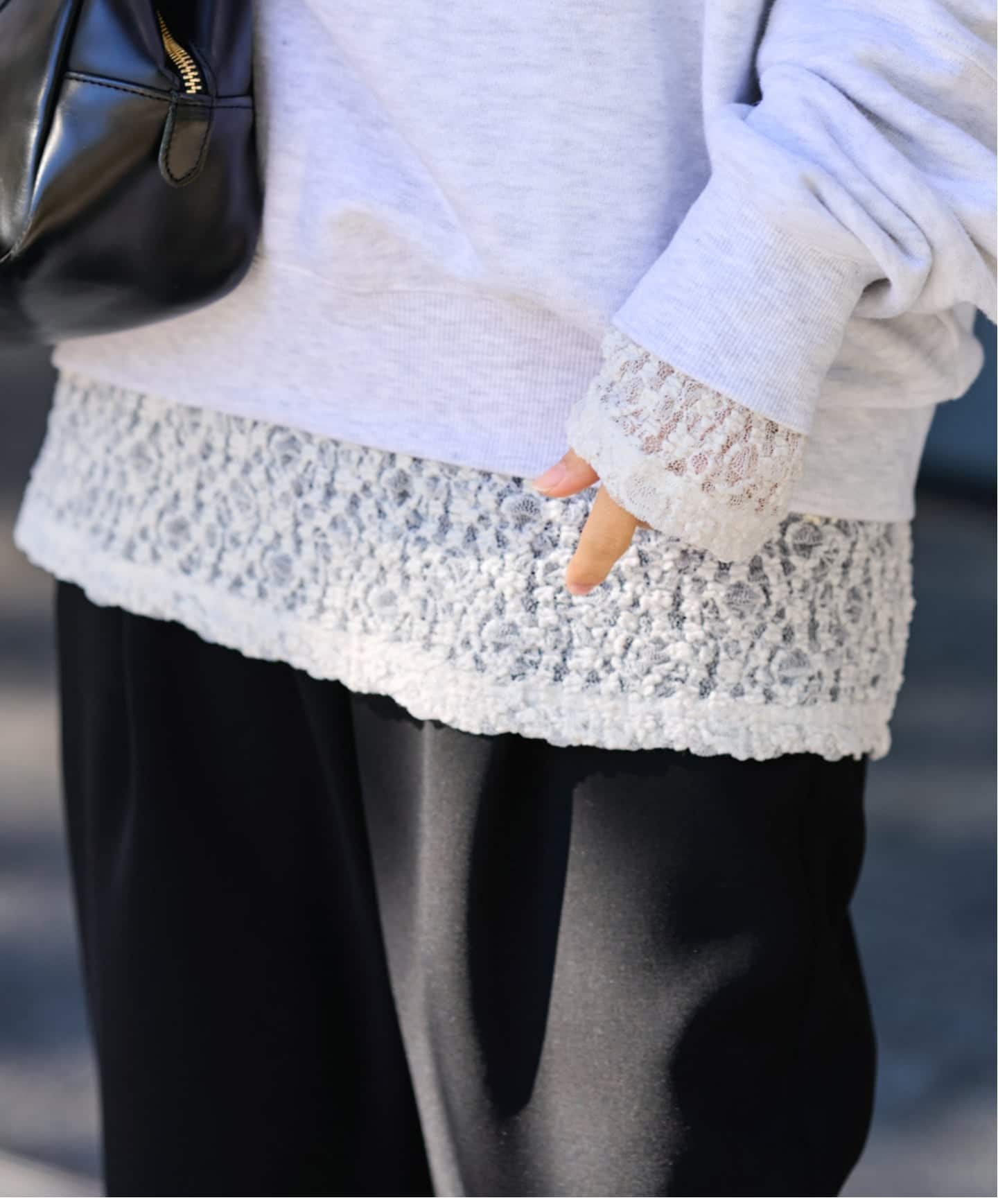 大人が着やすい甘さが抑えられたレースで、コーデのさりげないポイントとして活躍する一枚です。