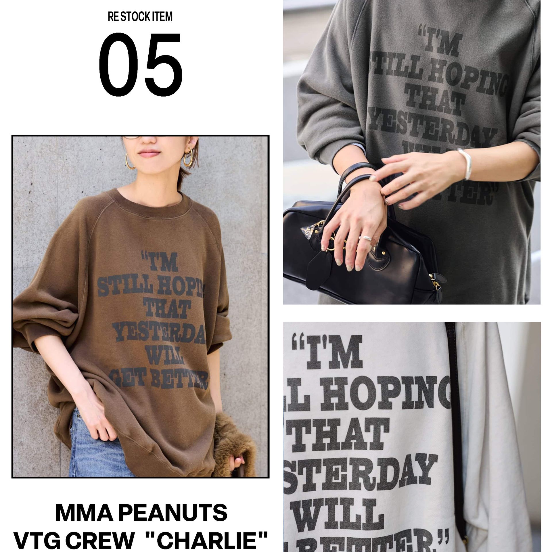 大人が着やすいPEANUTSスウェットをイメージしてつくりあげた一枚。