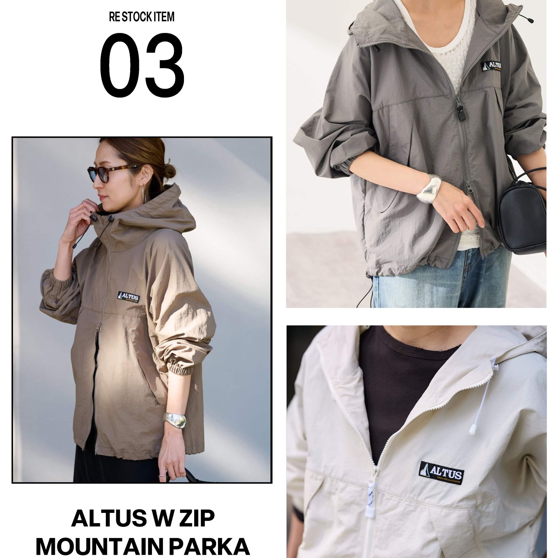 ダブルジッパーを採用し、レイヤードスタイルやボリュームのあるボトムスとの合わせに抜け感をプラスしてくれます。