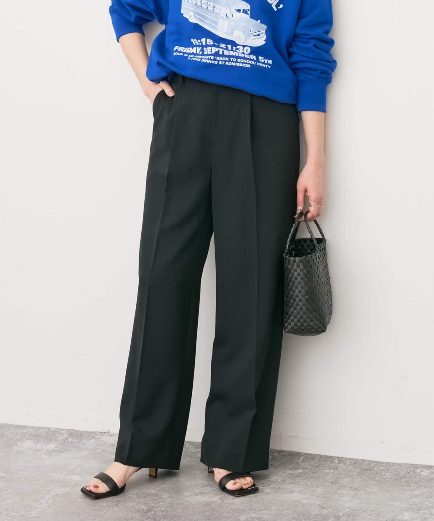 高密度に織り上げた上品な生地感と、ほどよくリラックスしたワイドシルエットが魅力です。