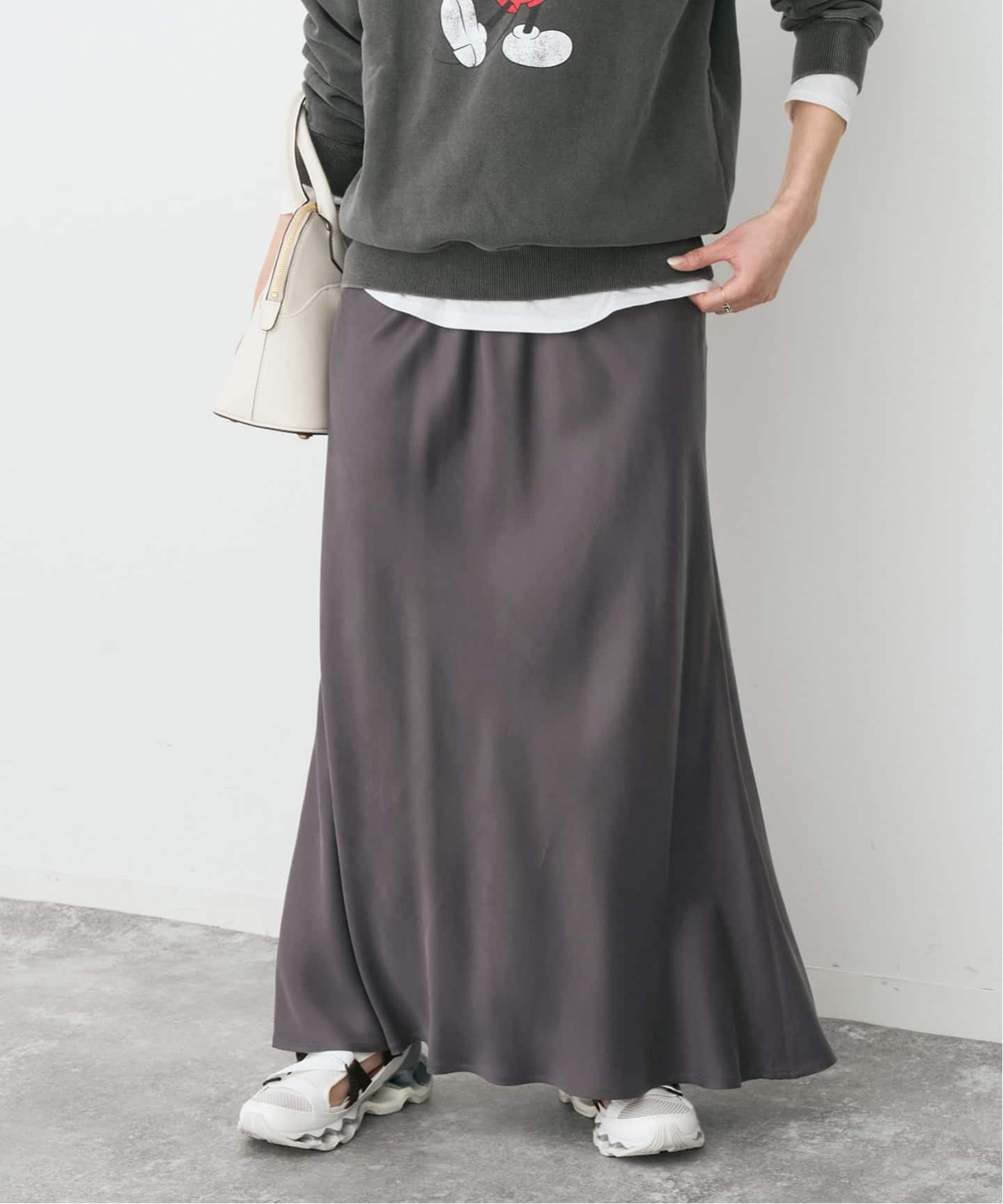 上品な光沢と落ち感が魅力の、キュプラマキシスカート。