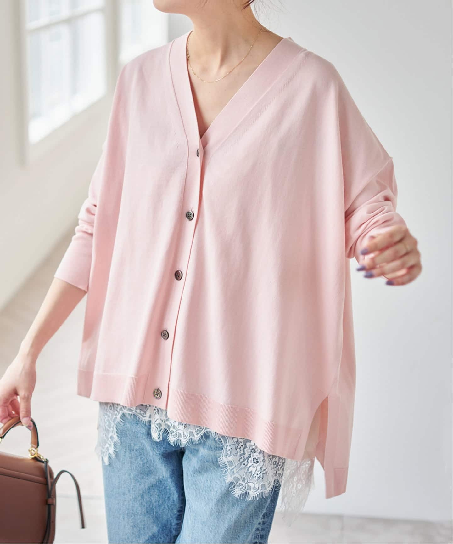 異素材使いの袖口が、レイヤード時にもさりげないアクセントに。