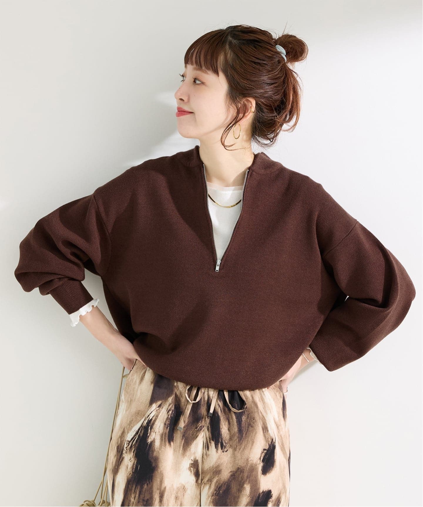 ハーフZIPでもキレイめ素材感のため、カジュアルになりすぎずに着用いただけます。ZIPを開けて、インナーを見せると抜け感のあるコーデになりおすすめです。
