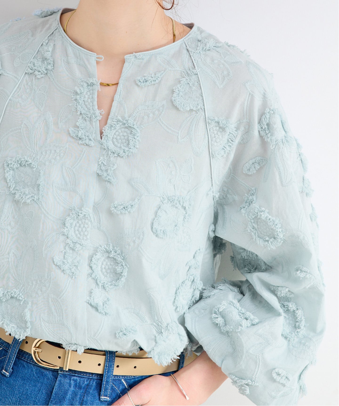 フラワー刺繍を施した3Dレース生地を使用し、シンプルに合わせても十分に着映えする存在感のあるアイテム。