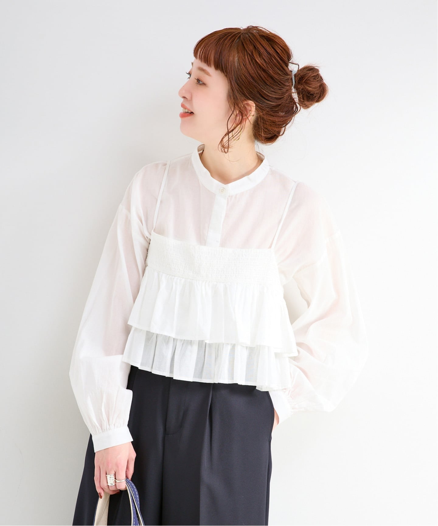 フリルキャミソールがセットになったキャッチー感のあるフェミニンブラウス。