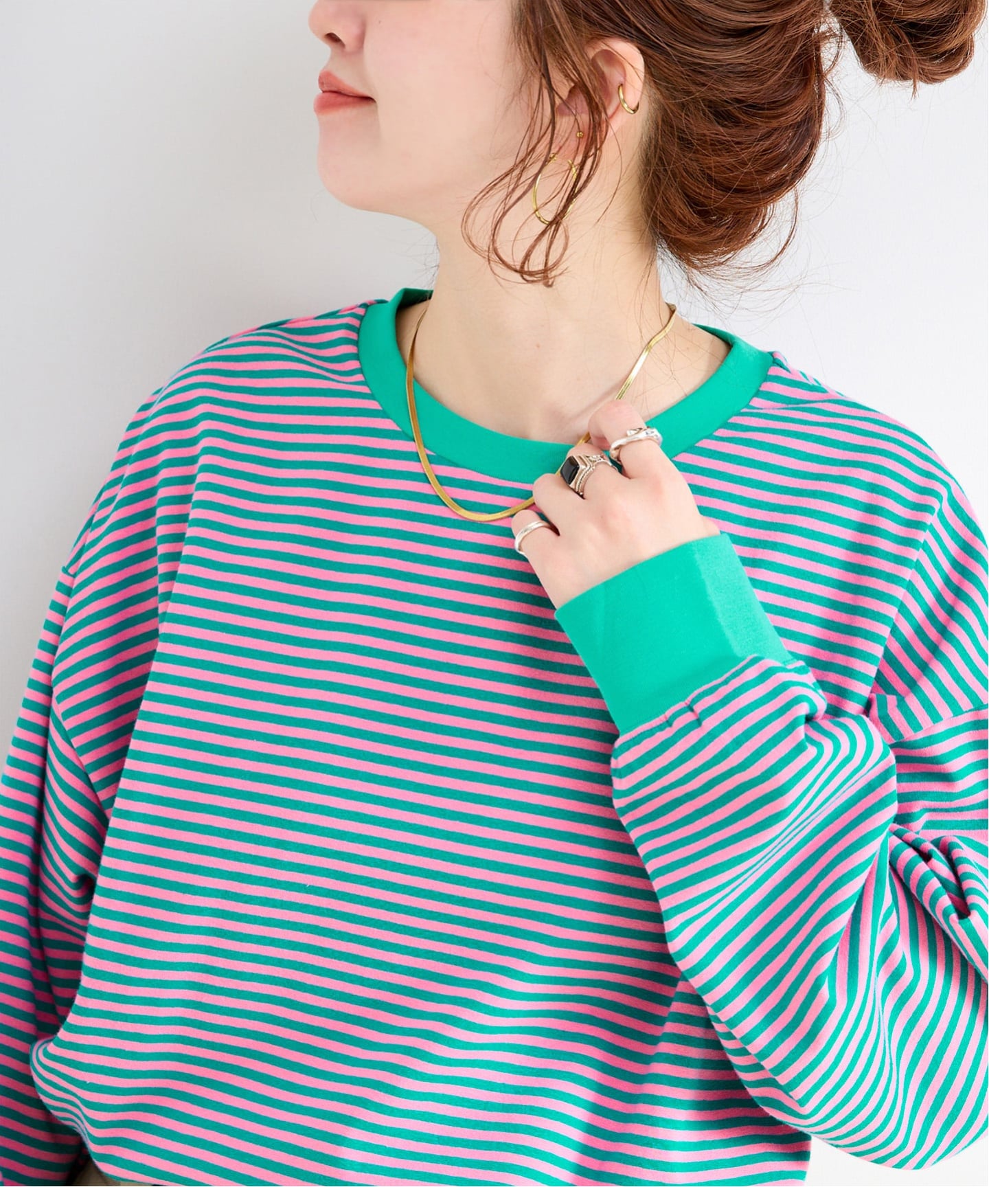 カラーバリエーション豊富で、キャッチ―な配色が他にはないボーダー柄ロンTEE。