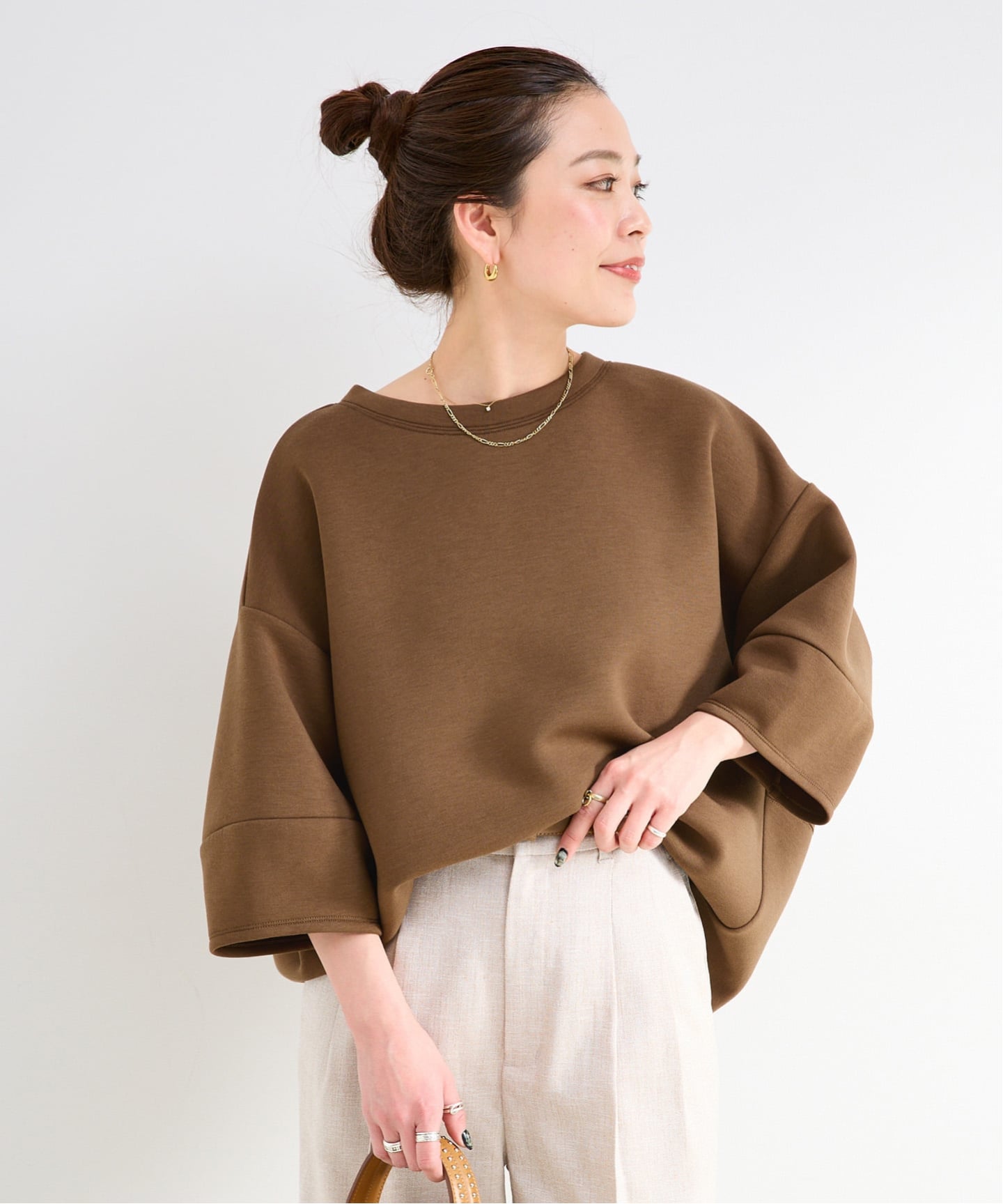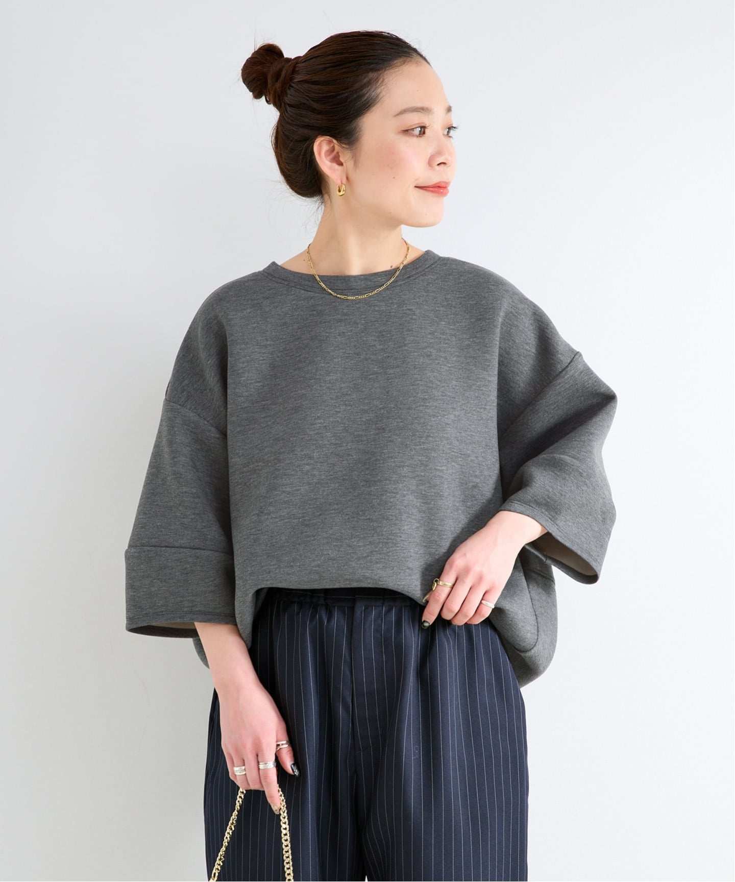 人気のダンボール素材を使用したコクーンシルエットのハーフスリーブプルオーバー。