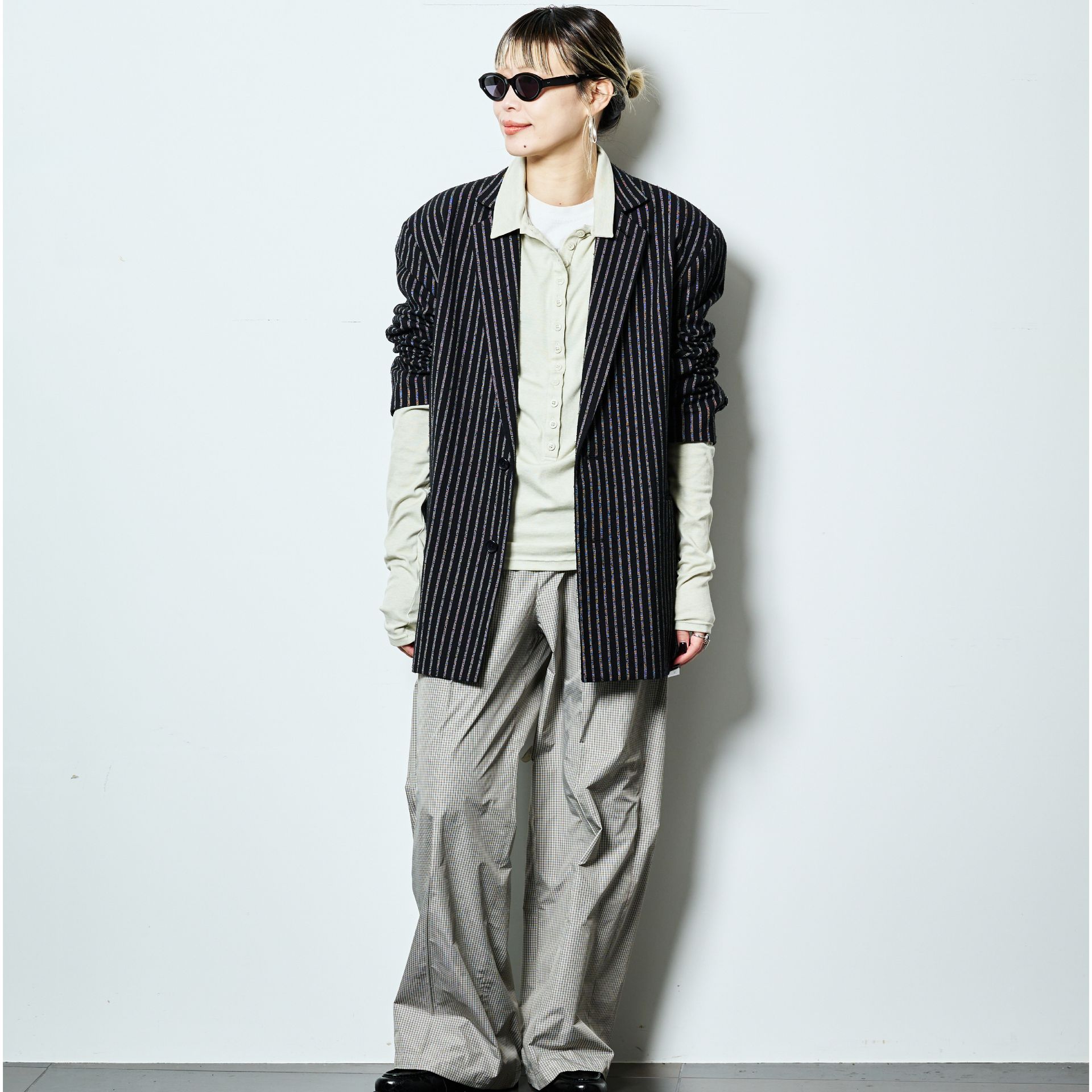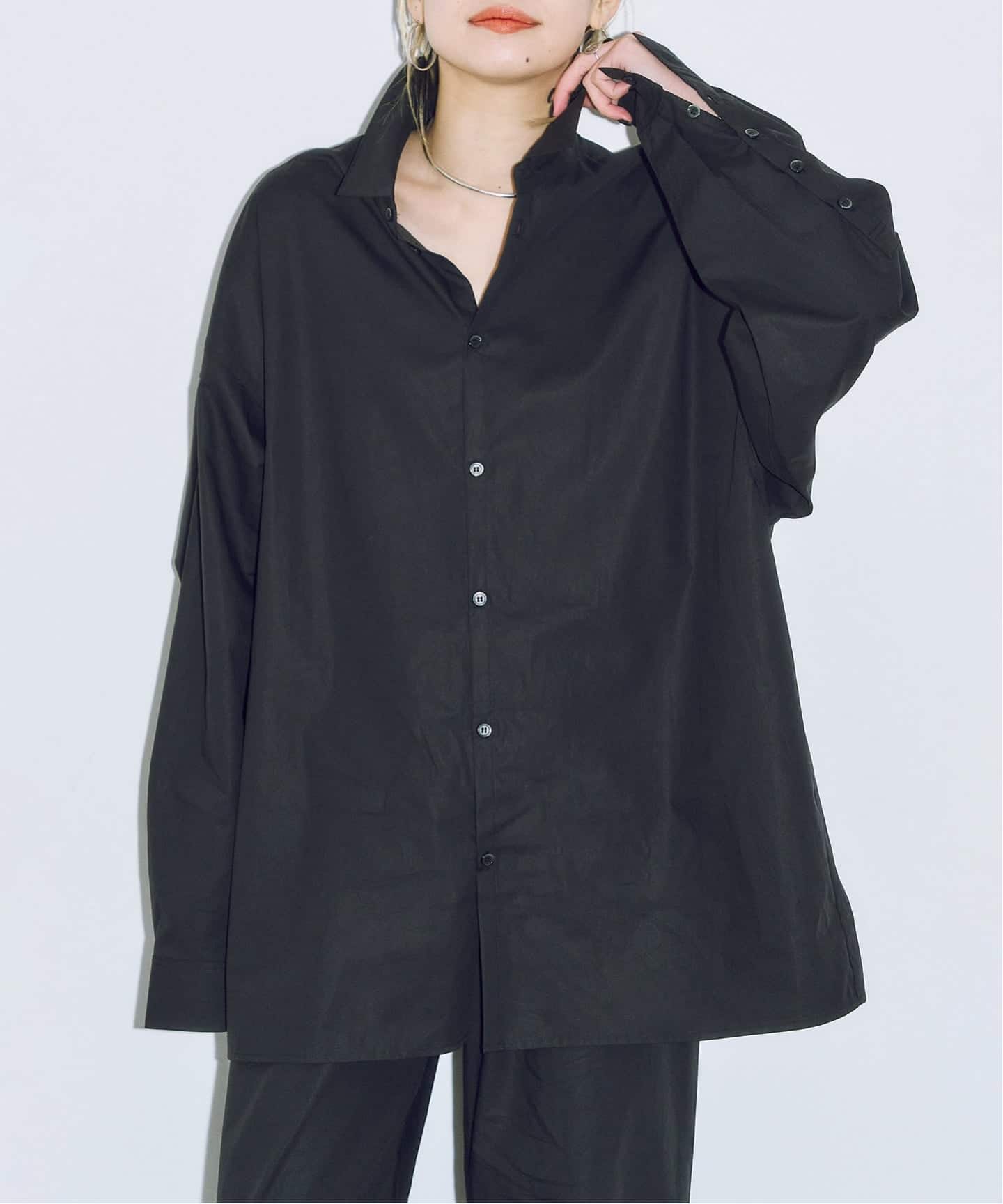 大きめシャツとワイドパンツのハンサム感を中和