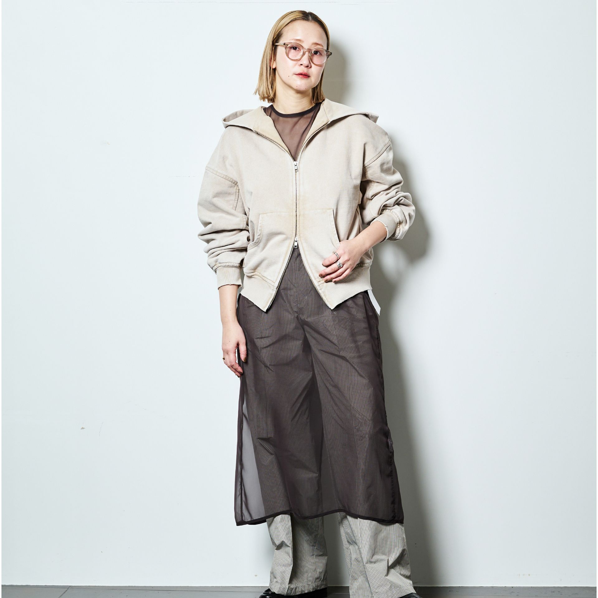 トレンドカラーのベージュのフーディは、