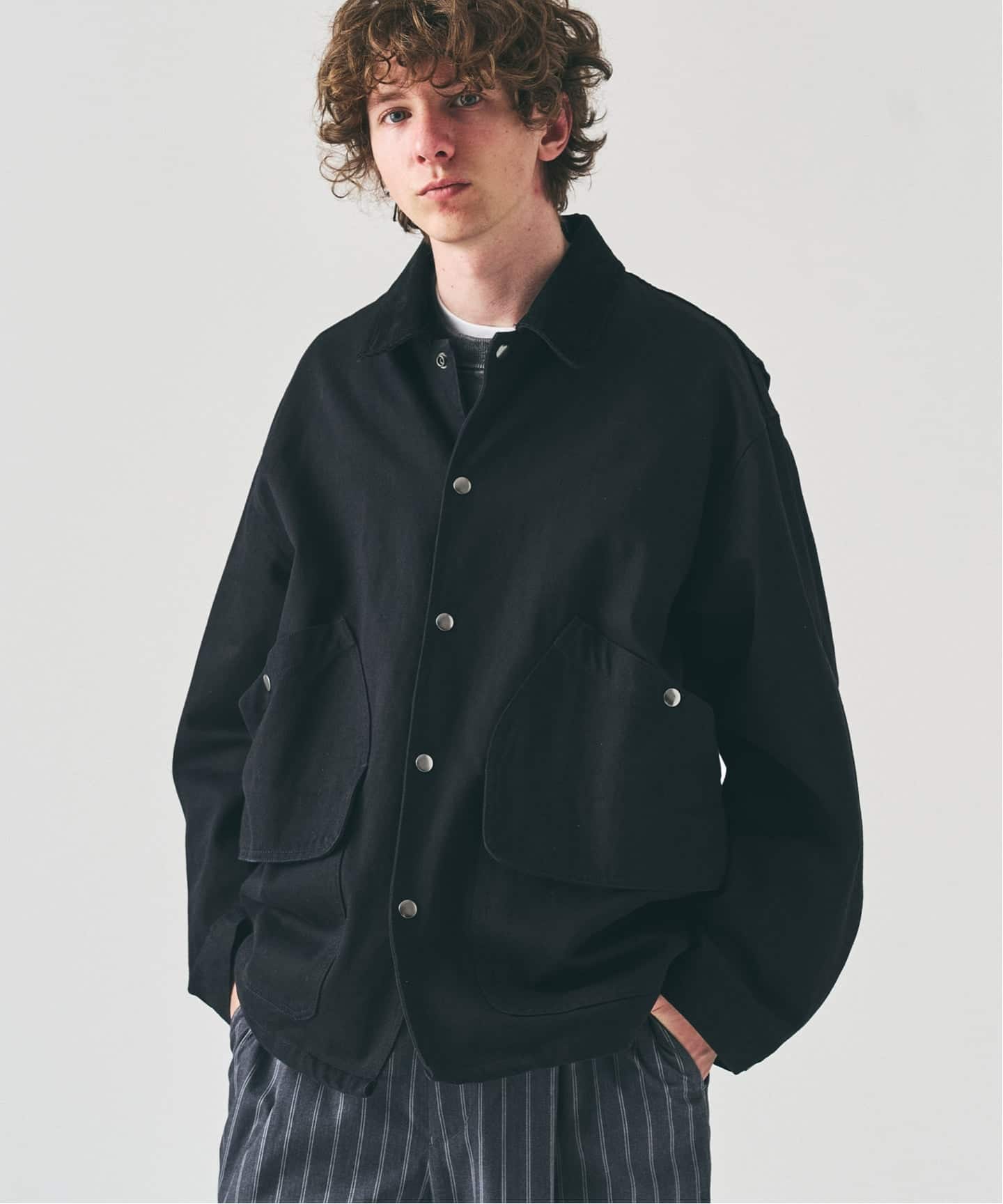 ハンティング由来のディテールを残しながら、コットンツイル素材で街着として整えた一着。ポケットの配置や分量感に存在感はあるが、主張しすぎないバランス。羽織るだけで、スタイルに奥行きが生まれる。