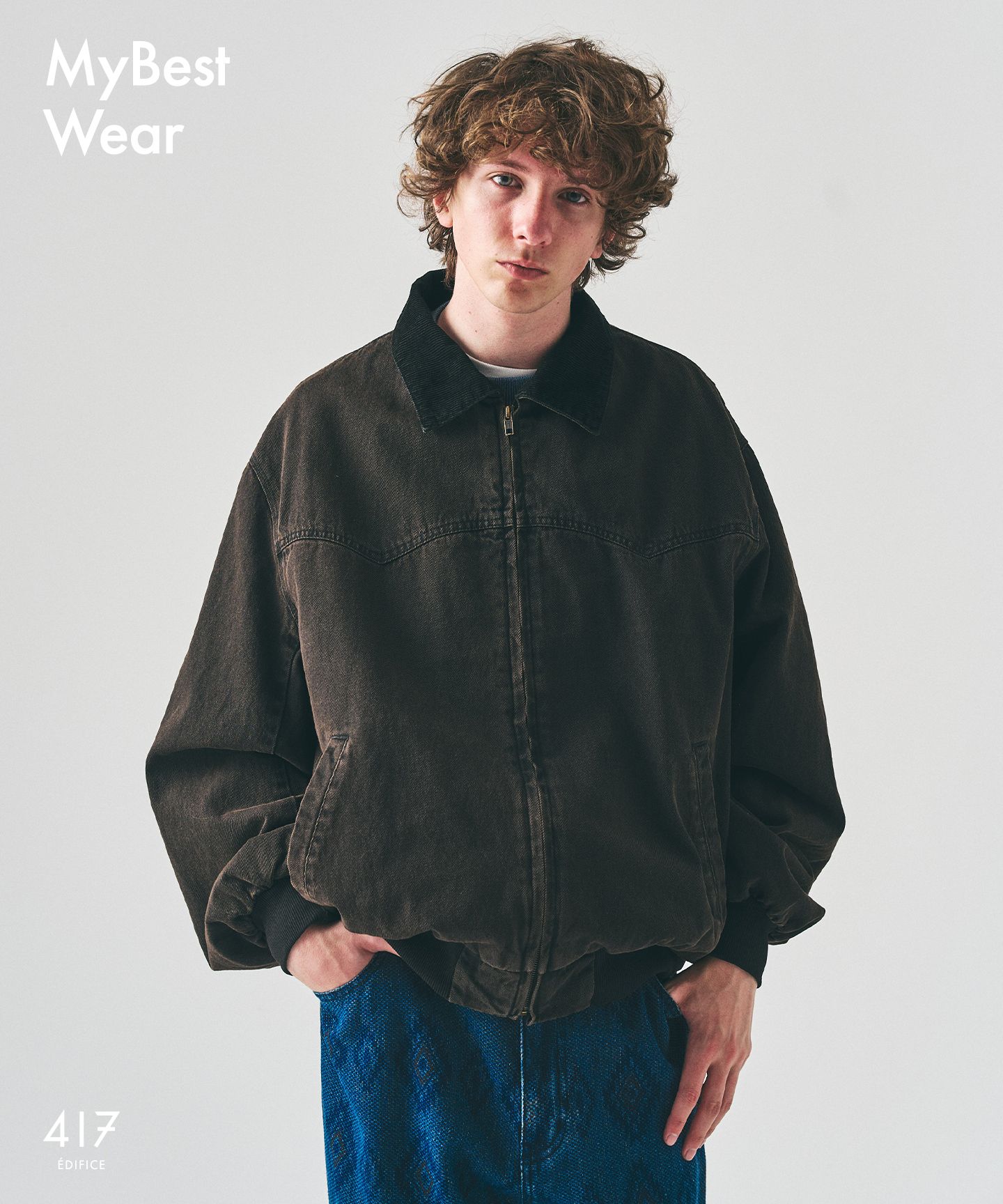 テニス由来の軽快さをベースに、417らしい配色と分量感で別注したボンバージャケット。スポーティな要素を残しながらも、スタイリングにすっと馴染むバランスに整えている。主役としても、コーディネートのスパイスとしても使える一着だ。