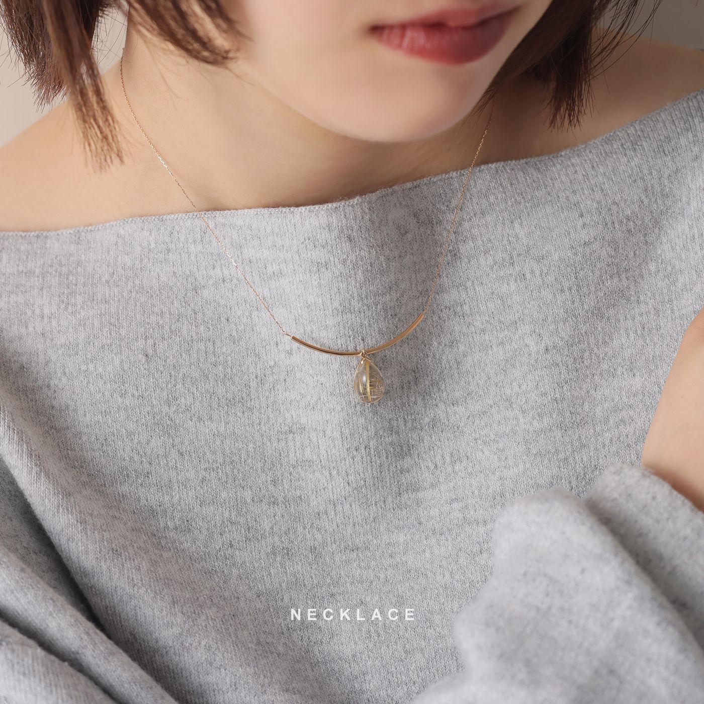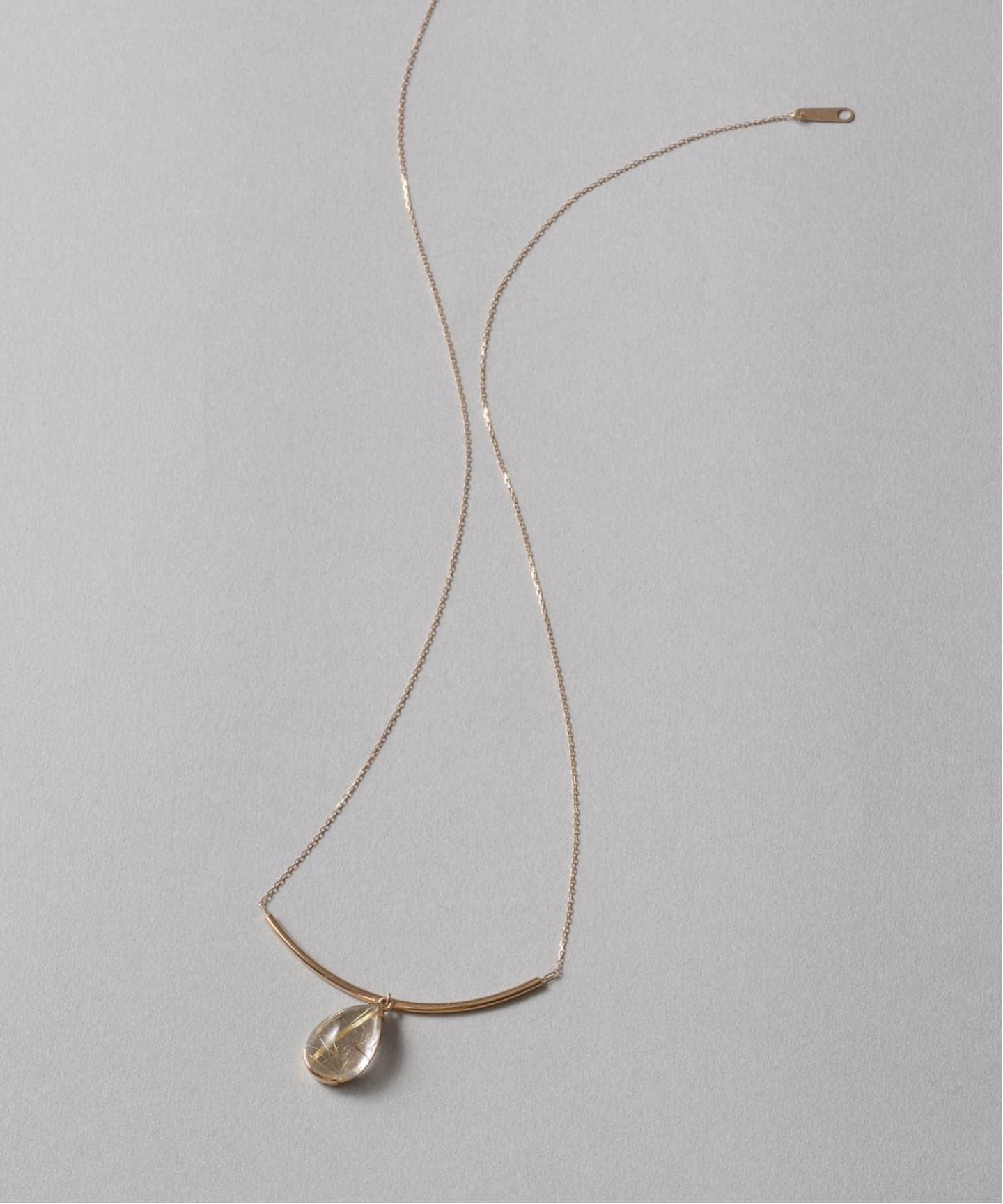 1.5mmの丸線をなめらかなカーブで仕立て、中央にはティアドロップ型のルチルクォーツをそっと揺れるようにセット。