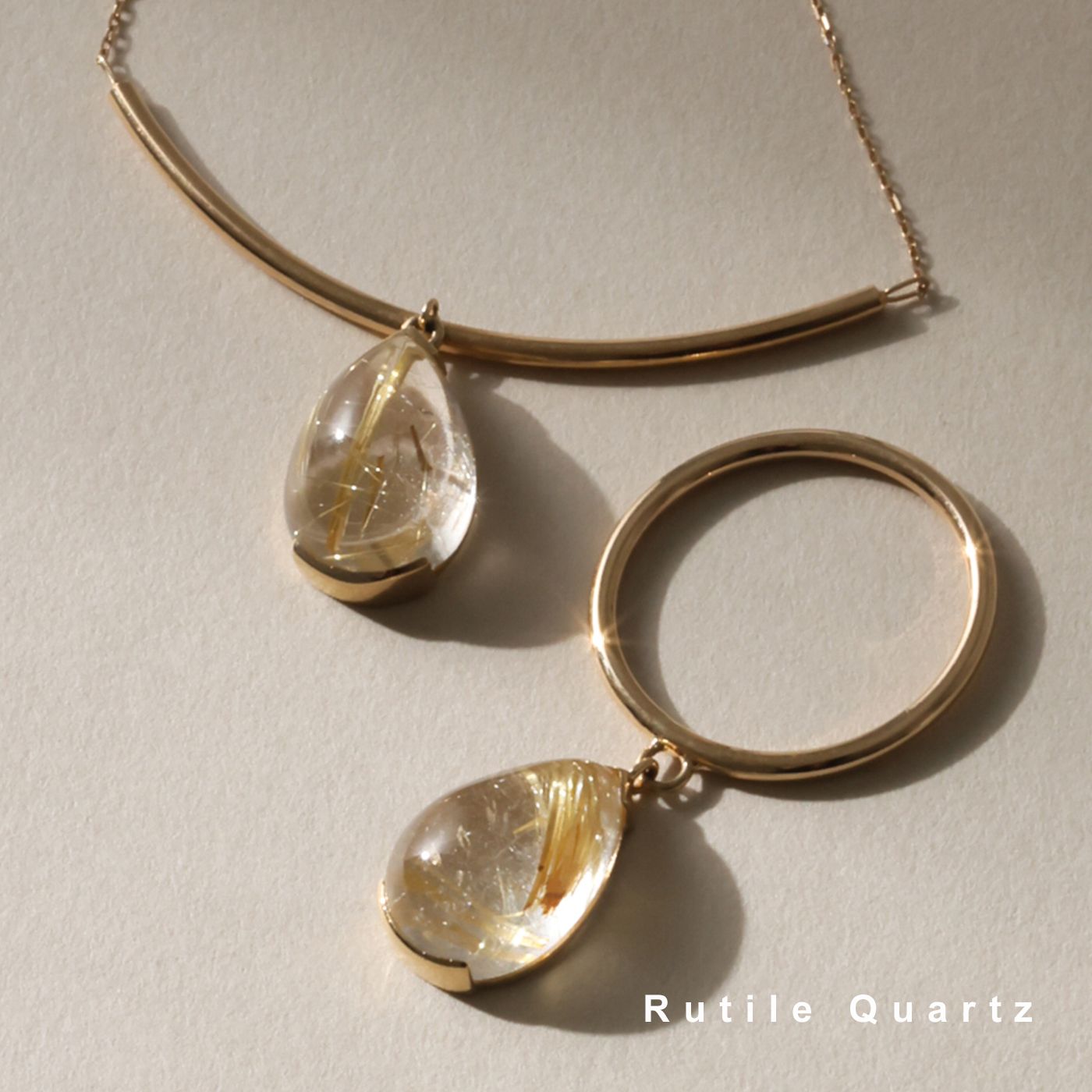 自然が生み出した神秘的なルチルクォーツを、モダンなエッセンスで仕立てました。
