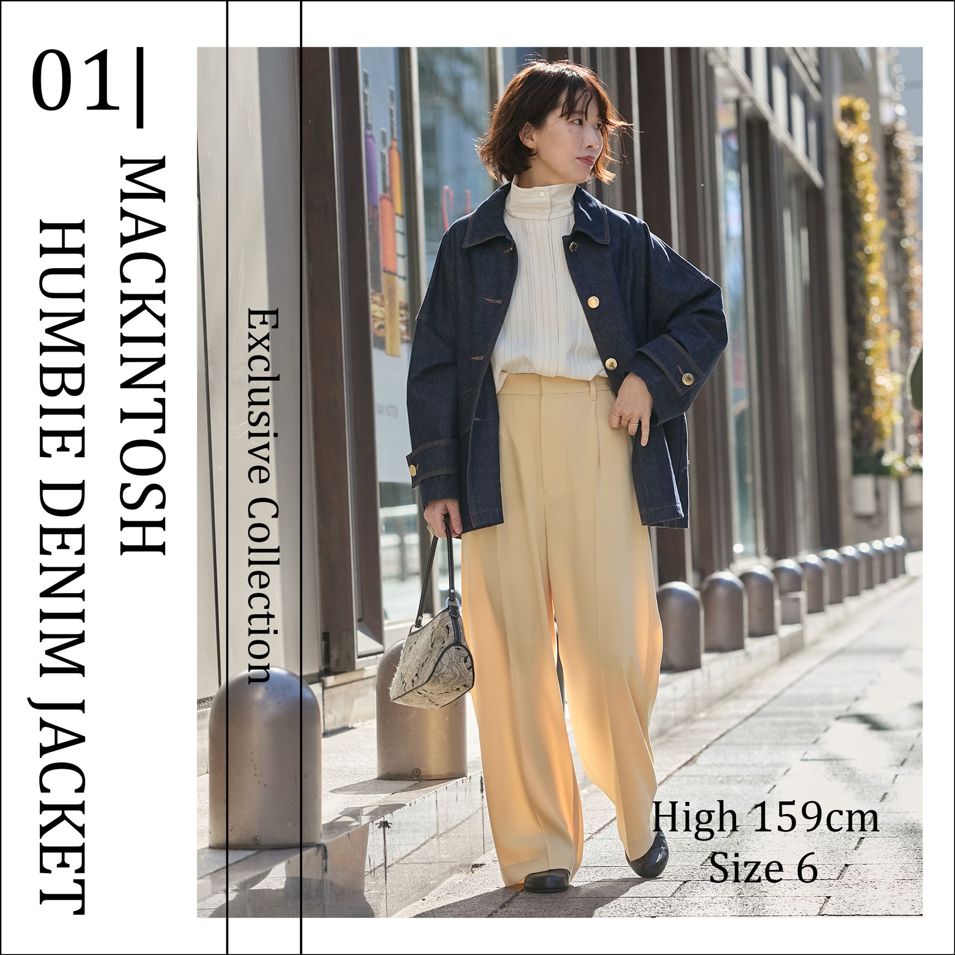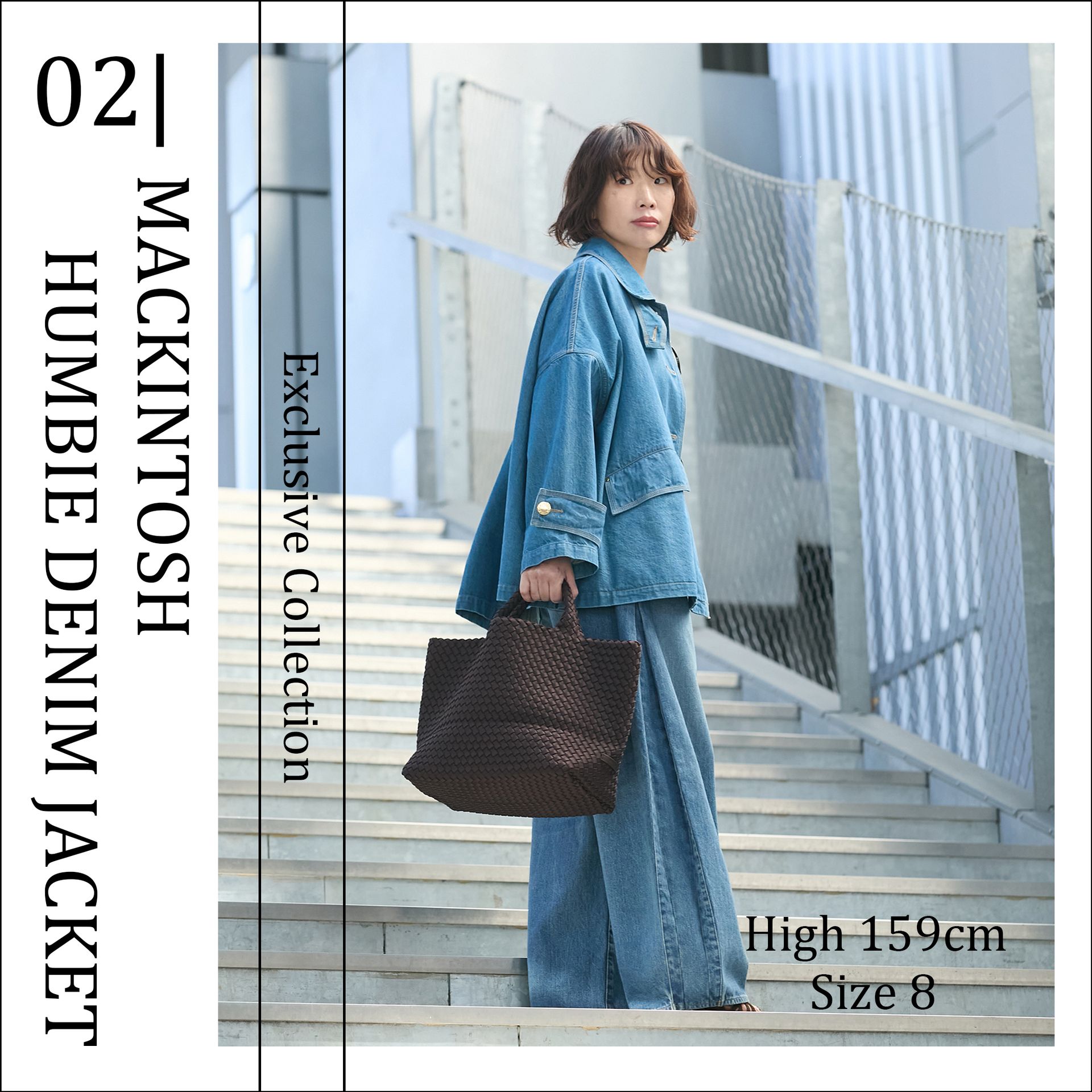 サイズ8を羽織って同カラーのデニムワイドパンツとの『デニムONデニム』のコーディネイト。このサイズならではの抜け感が◎