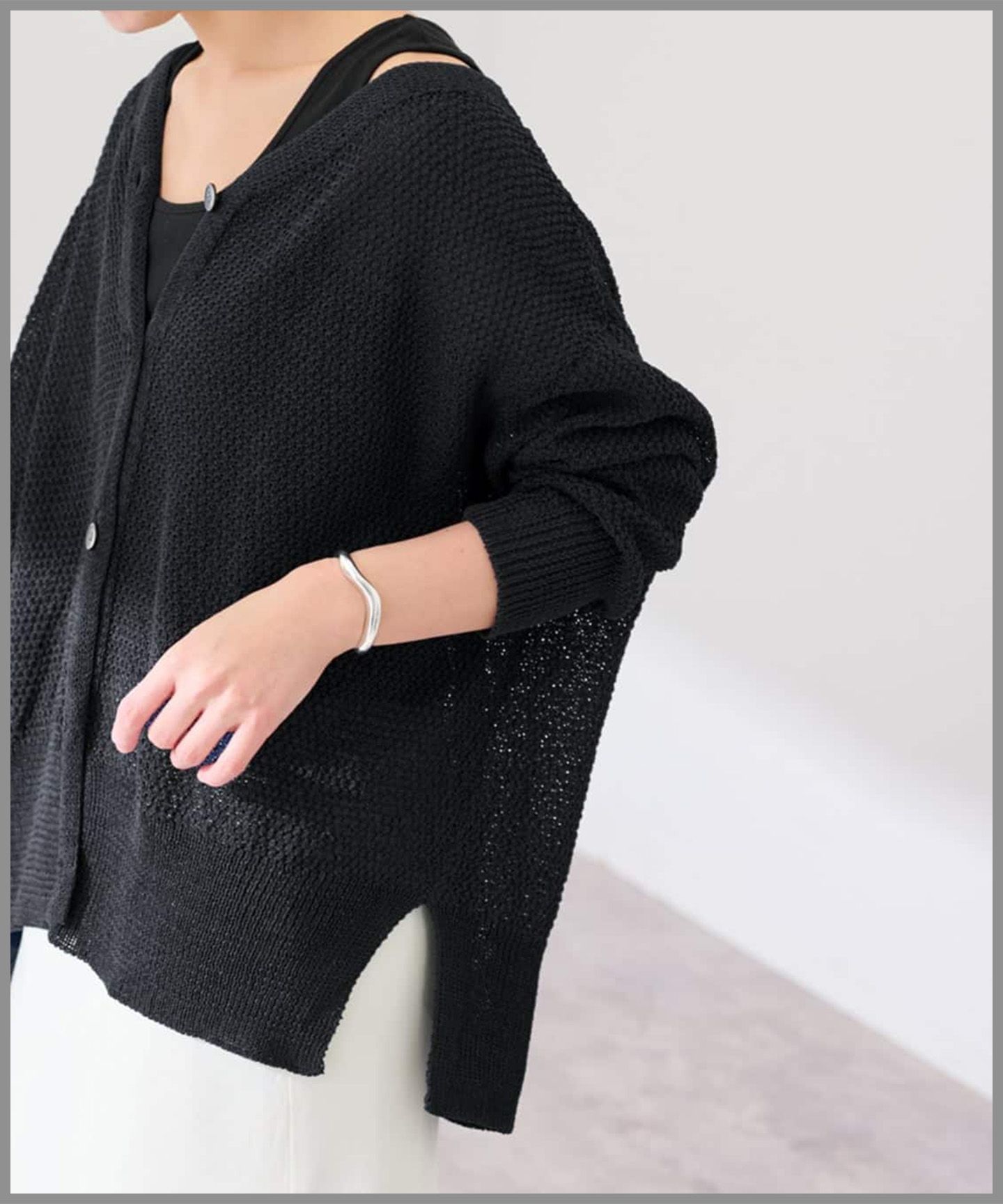 一枚でさらりと着るのはもちろん、前を開けて羽織りとしても活躍する万能アイテムです。