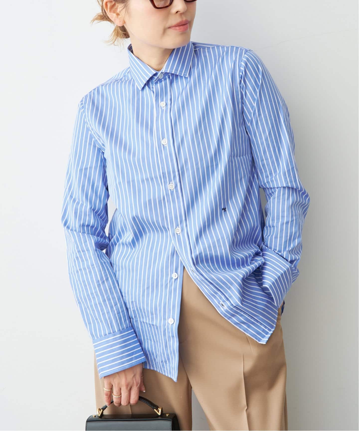 TRADなレイヤードスタイルに効くミニマルなポロシャツにシャツを重ねるのもモダンでチャーミング!
