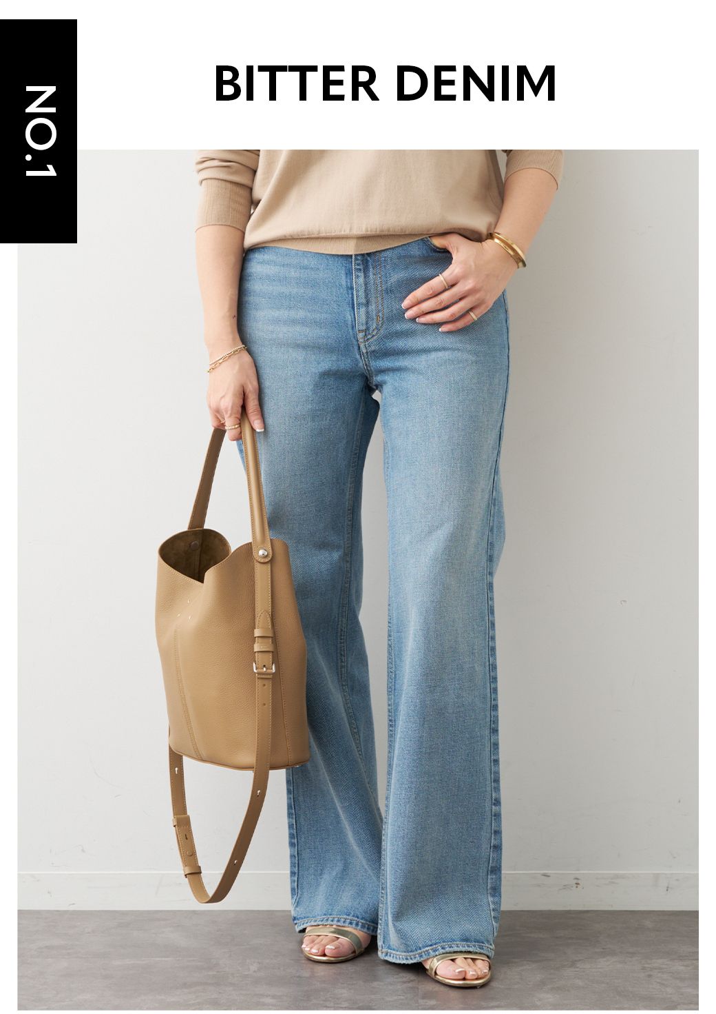 高めのウエスト位置やダメージ位置が計算され、自然と綺麗に見せる1本。