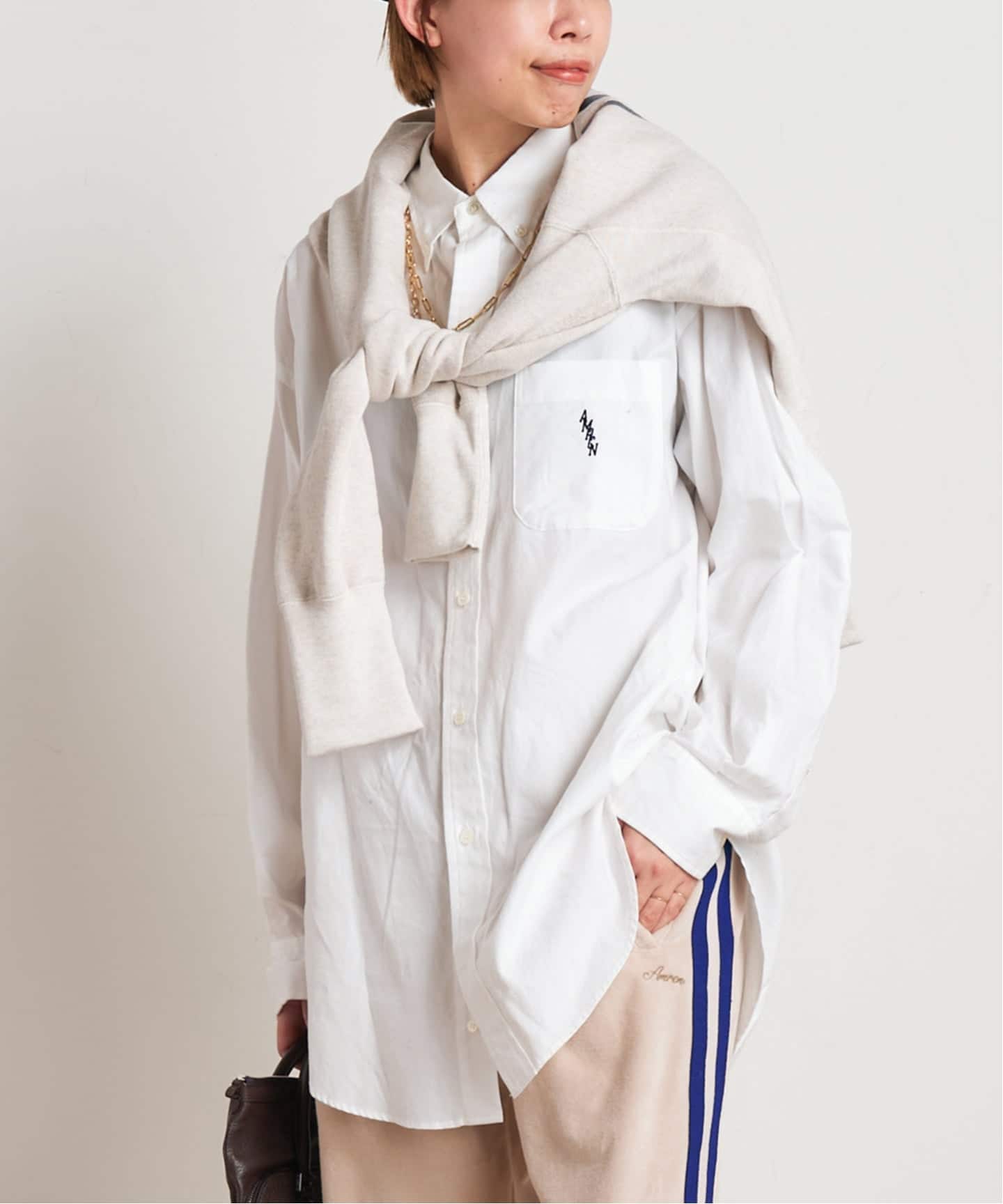 シャツが持つ真面目さも、AMERICANAなら程よく気が抜けたこなれスタイルに。