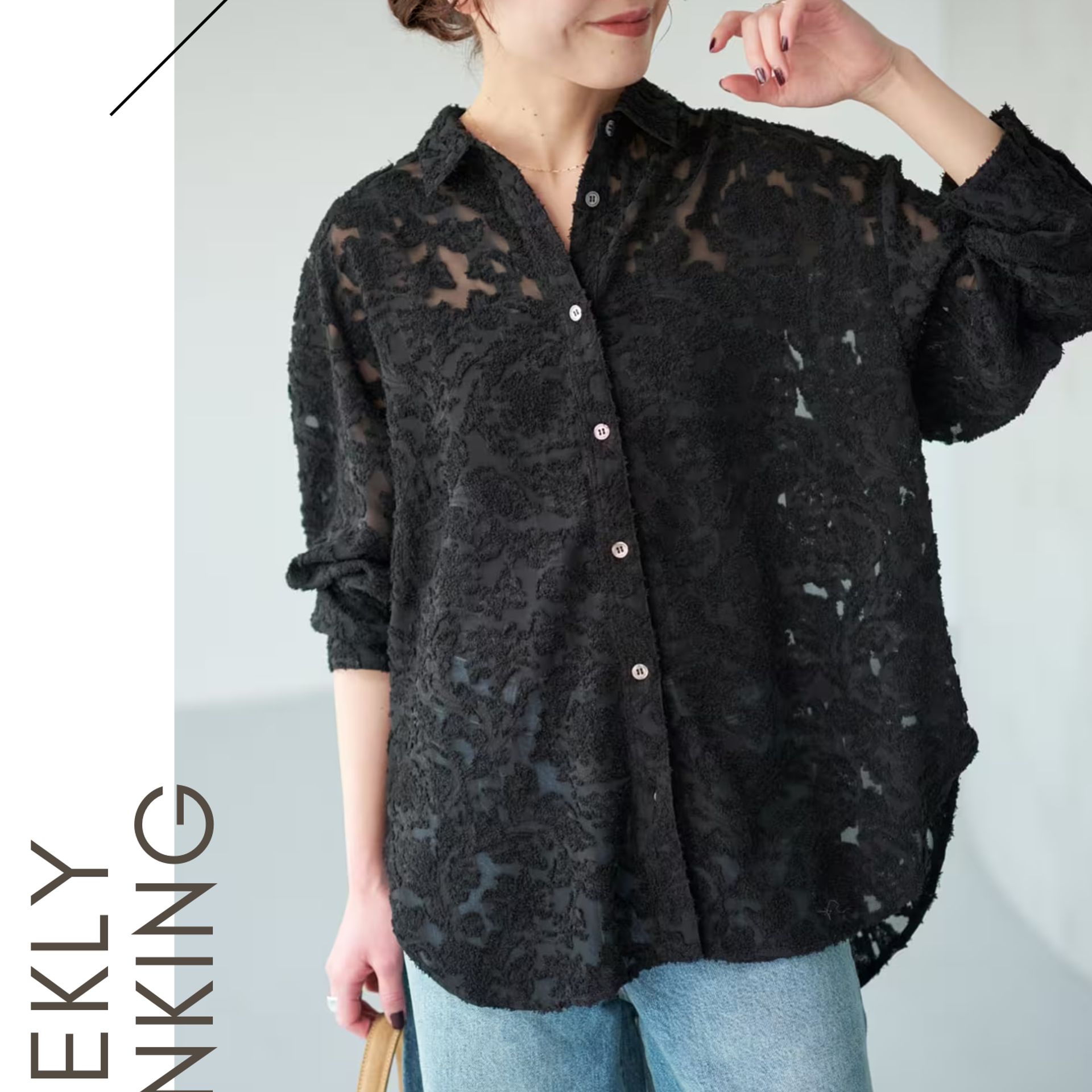 透け感を抑えたデザインで、デイリーからきれいめシーンまで幅広く活躍します。