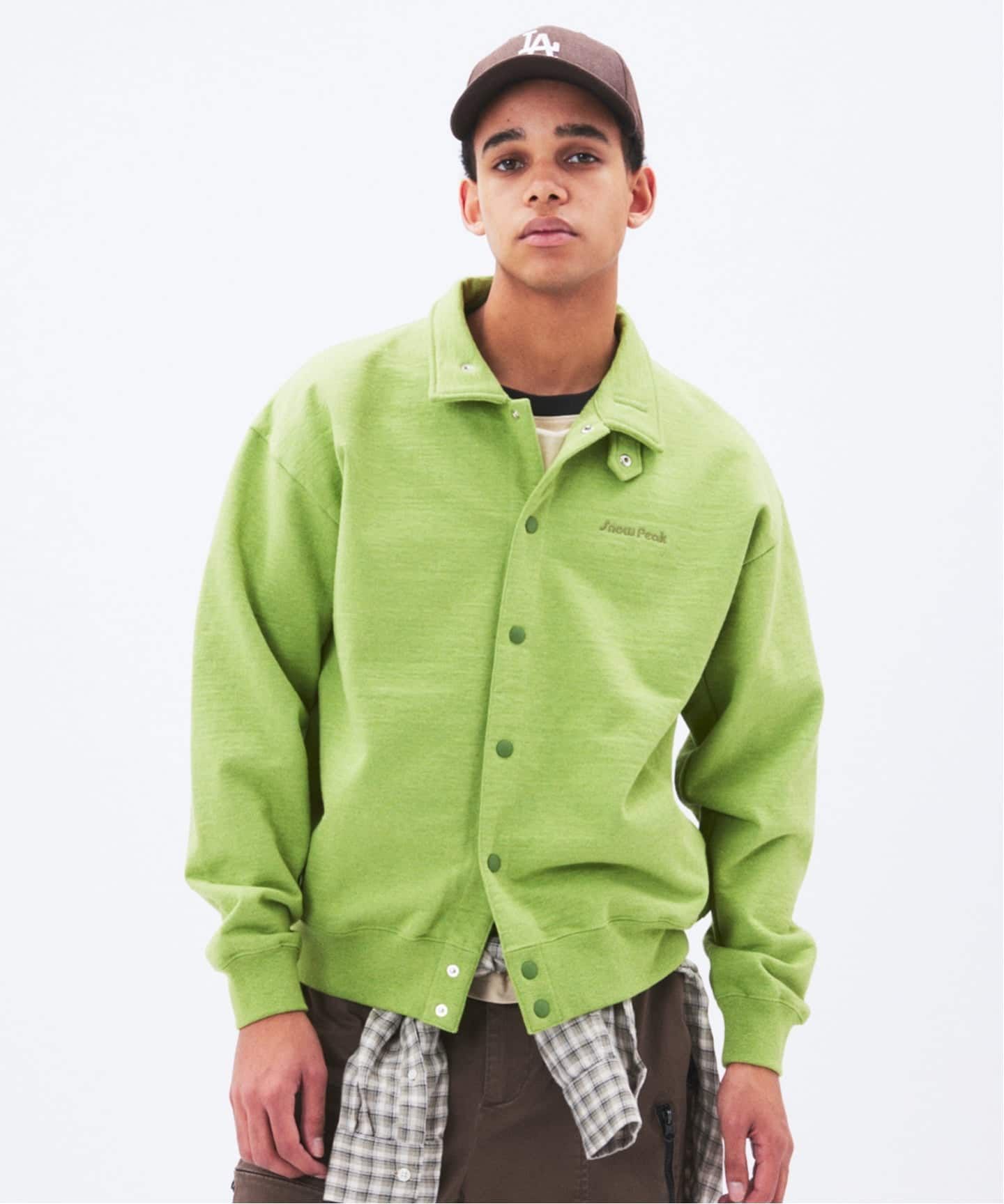 デザインの軸になっているのは、90年代の某アウトドアブランドの襟付きスウェット。昨年好評だったハーフスナップから、今回はフルスナップ仕様にアップデートしました。