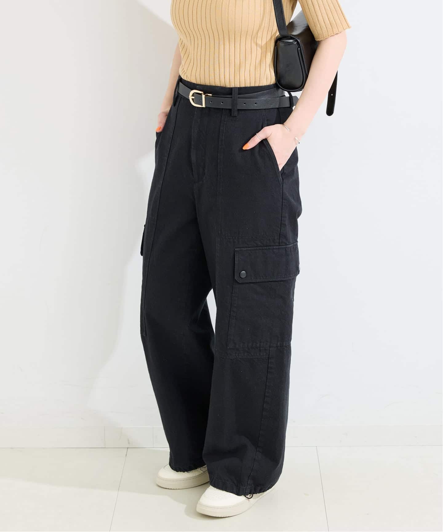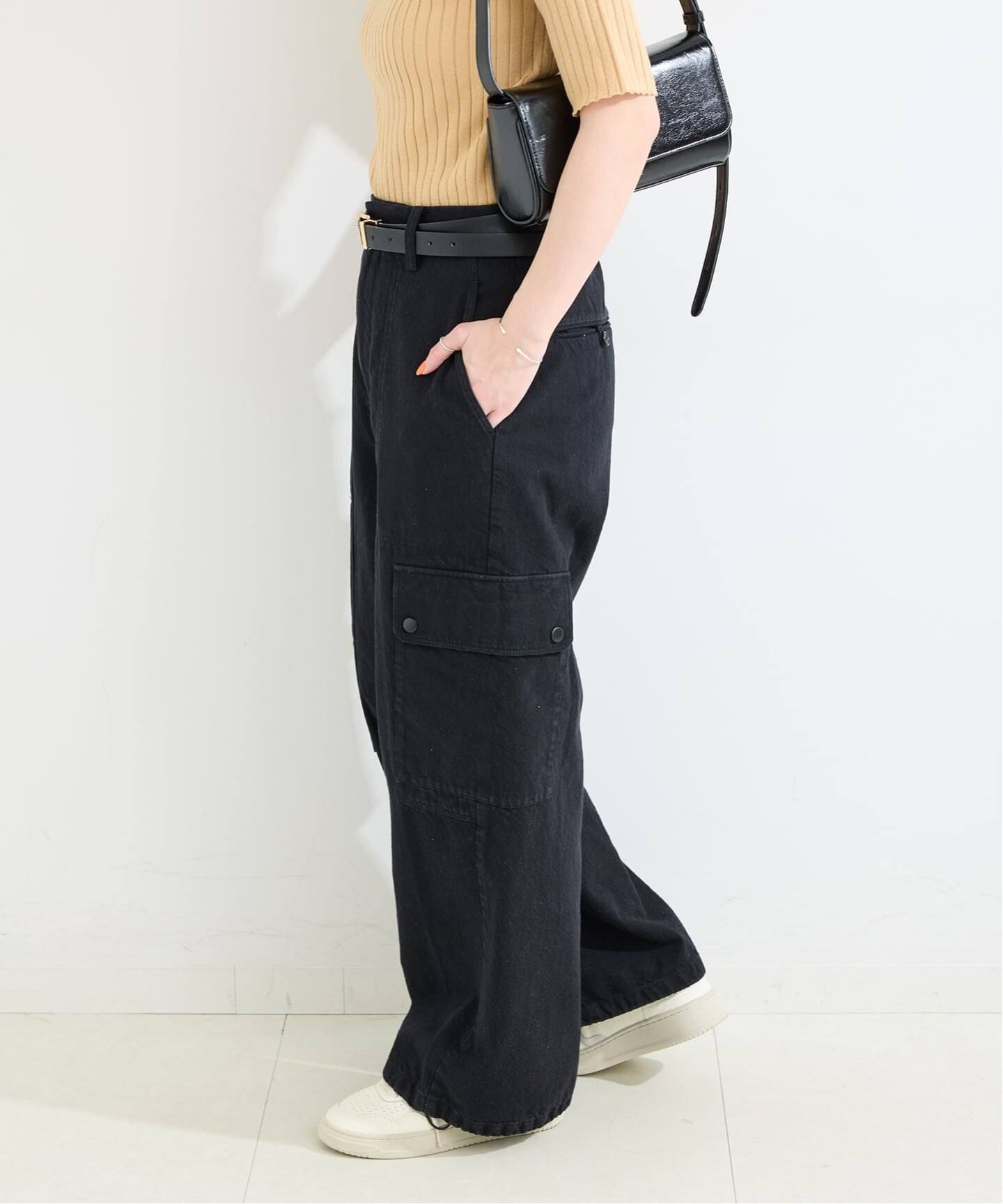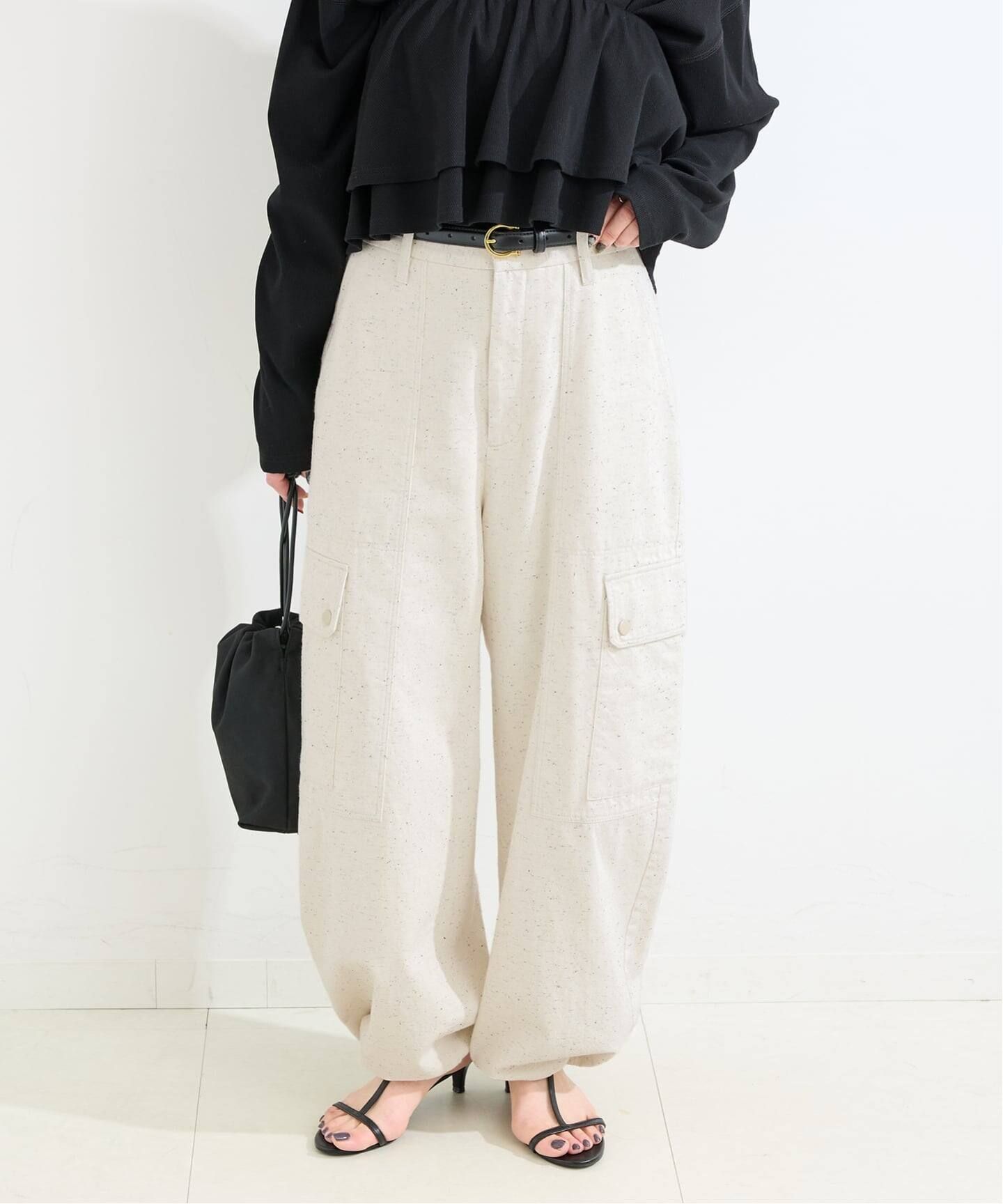 コットンのジャージのような膨らみのあるセミツイード素材のカーゴパンツ。