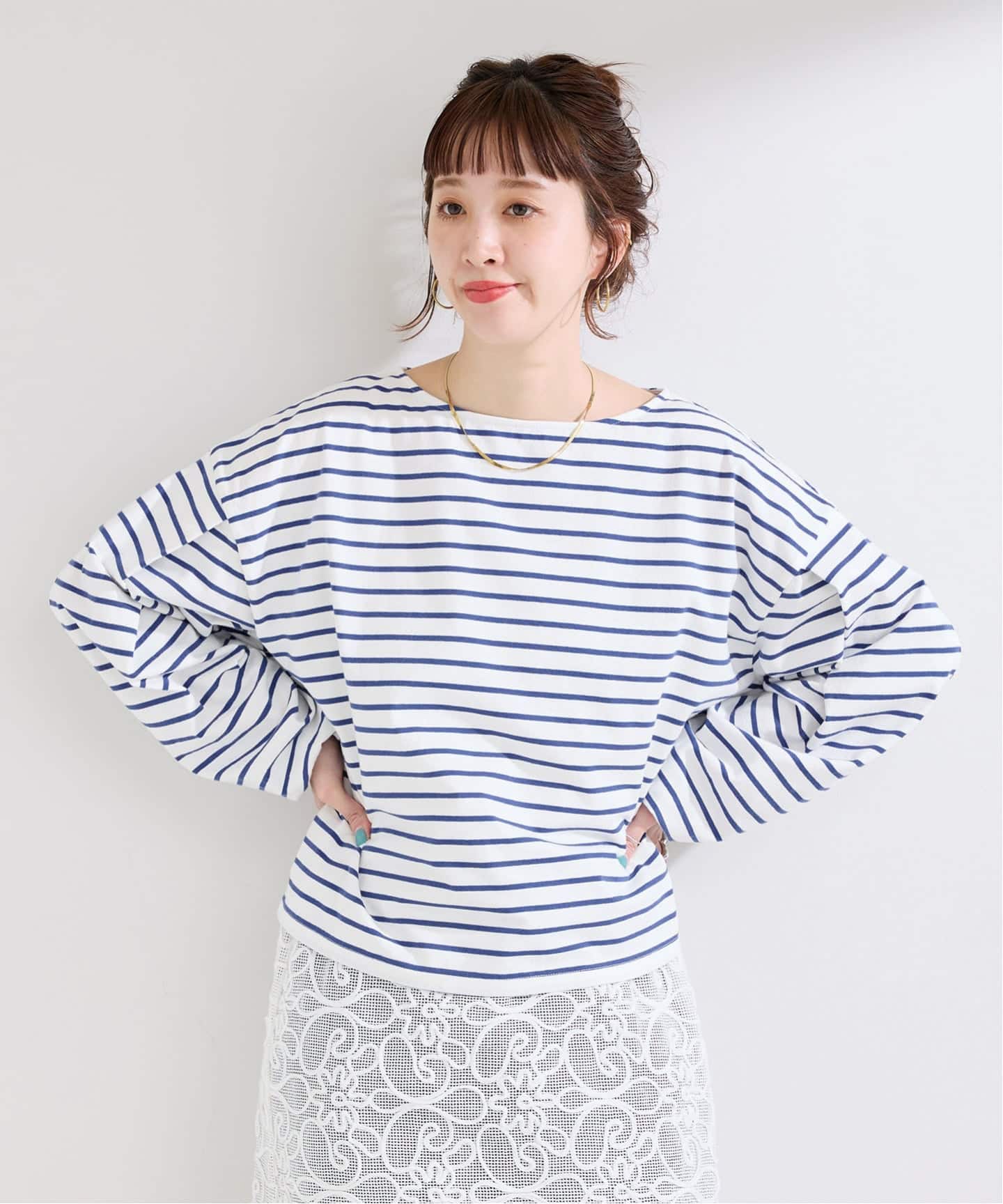 柔らかな風合いの天竺ボーダー素材を使用したプルオーバー。