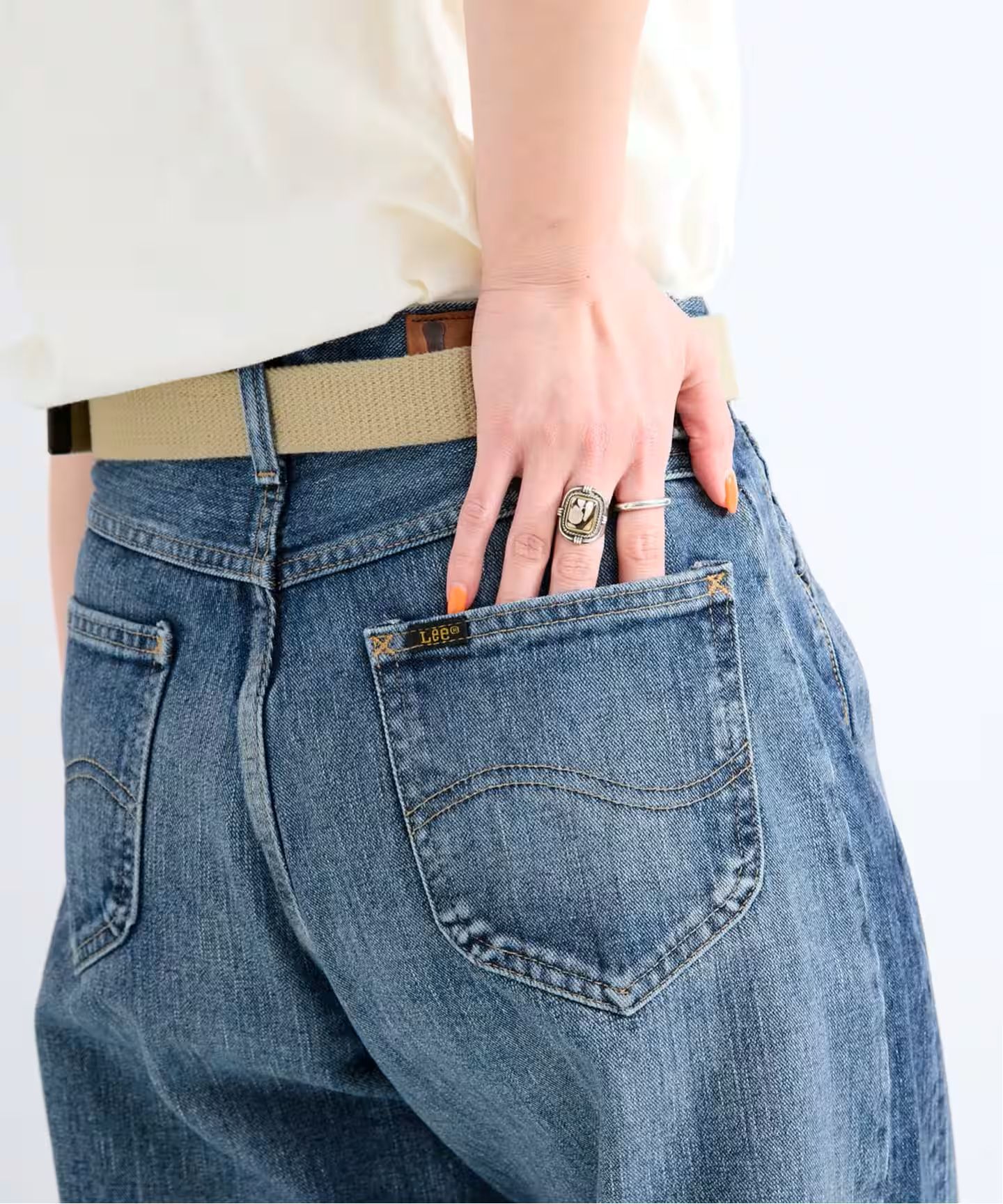 Lee好評のカーブパンツのウエスト位置をオリジナルより穿きやすい股上に変更/加工感を抑えて綺麗目に仕上げました。きれいシルエットのカーブパンツはスタイリングに欠かせません。裾にかけて脇の切り替えを前に振ることで程よいカーブシルエットを表現しています。日本製ならではの自然な程よい色落ち感がポイント。季節問わず大活躍するミッドユーズドとライトユーズドの2色展開です。