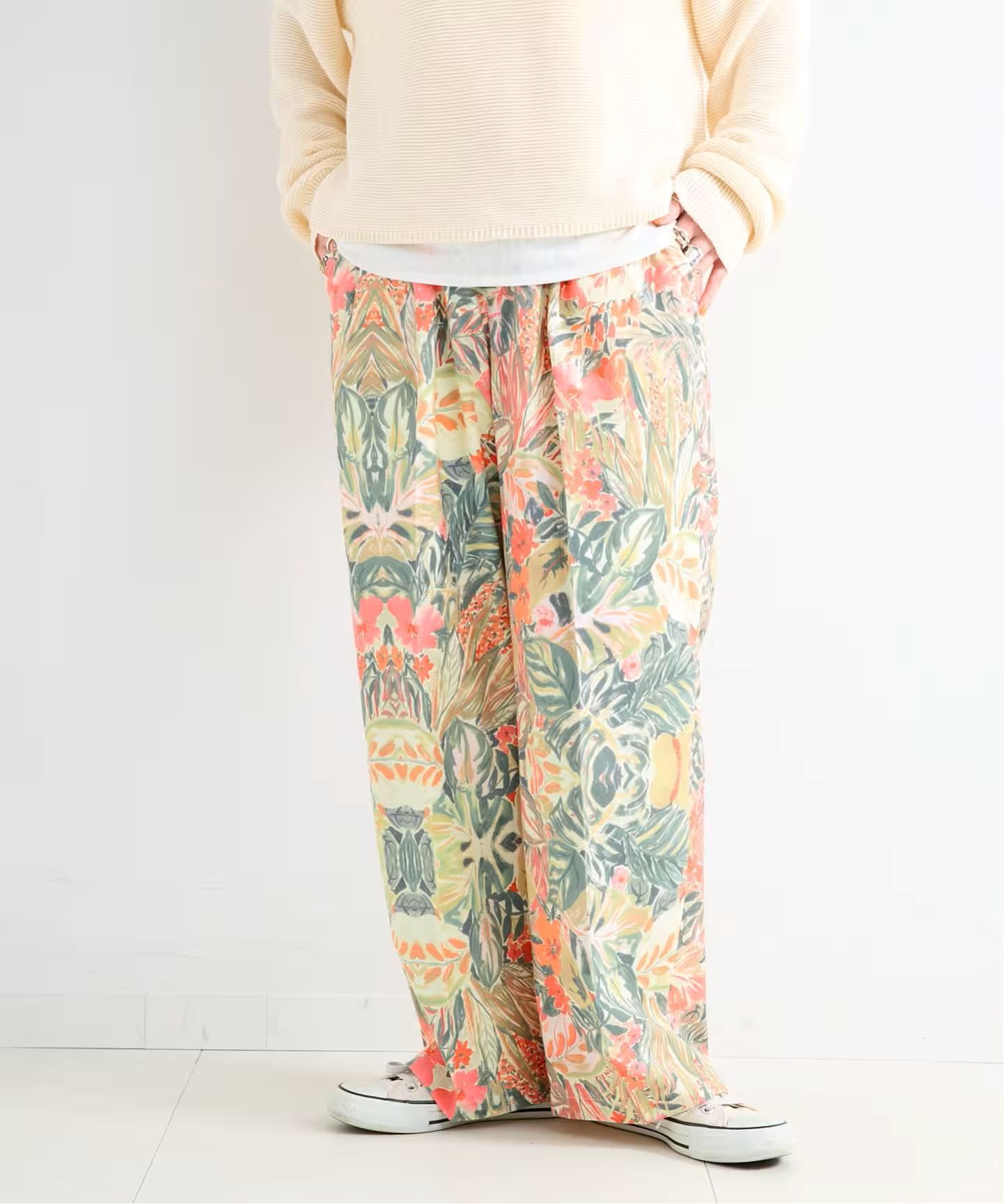 存在感のあるアート柄プリントのタックトラウザー。