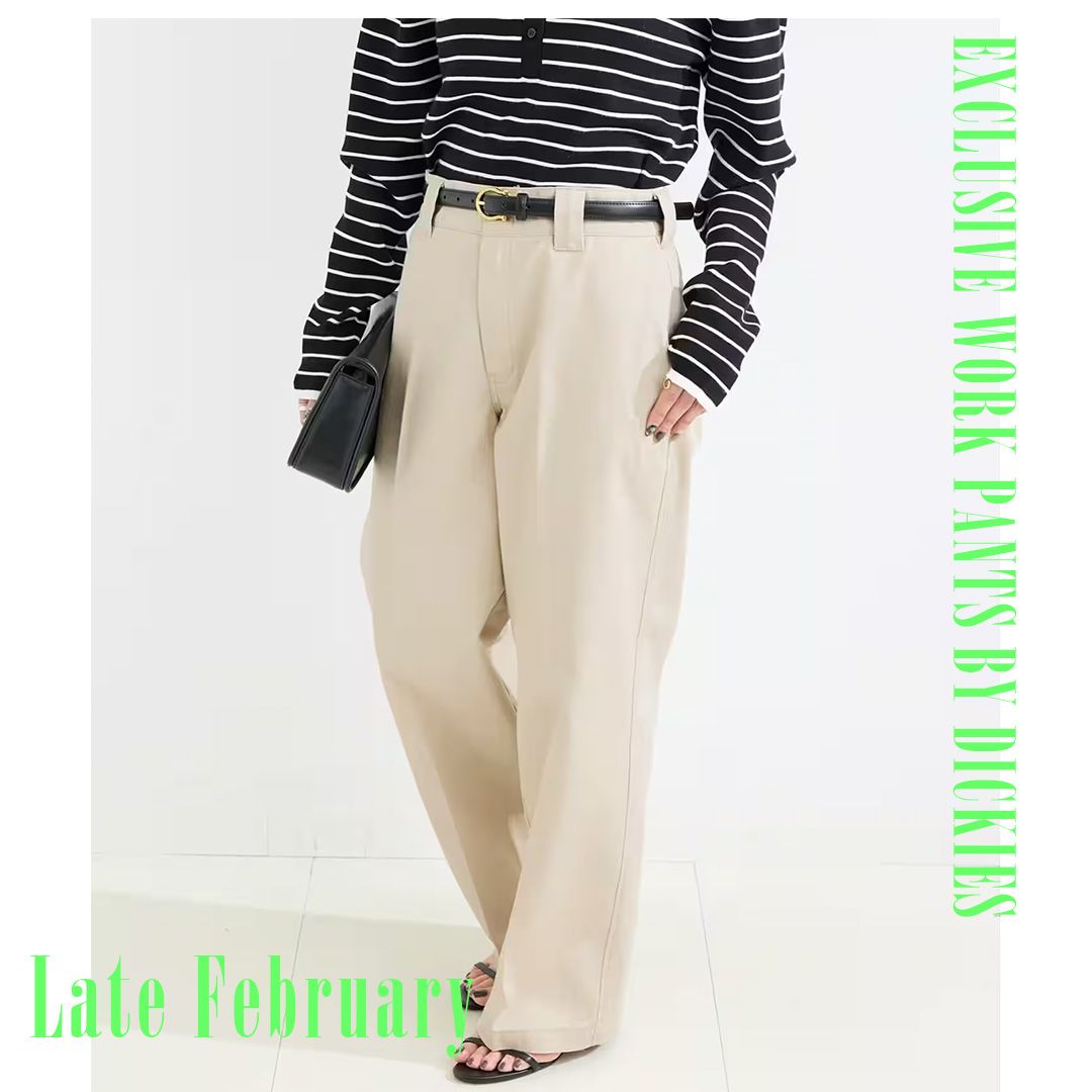 Dickies定番のTCツイルを使用。Dickiesの名品「875」をベースに、別注したワンウォッシュモデルの登場。生地本来のハリと強さを残しながらも、穿き始めから馴染みの良い柔らかさを備えています。ワークパンツとしての実用性はそのままに、シンプルで端正なシルエットへ。無駄のないデザインが、合わせるトップスを選ばず、日常に溶け込む一本です。清潔感と程よい存在感を兼ね備え、長く愛用できるタイムレスな定番。ワードローブに一本持っておきたい、信頼の別注シリーズです。別注ポイントは875モデルをベースに、ワンウォッシュ加工で自然な表情と履きやすさをプラス。綺麗なストレートシルエットを別注しました。