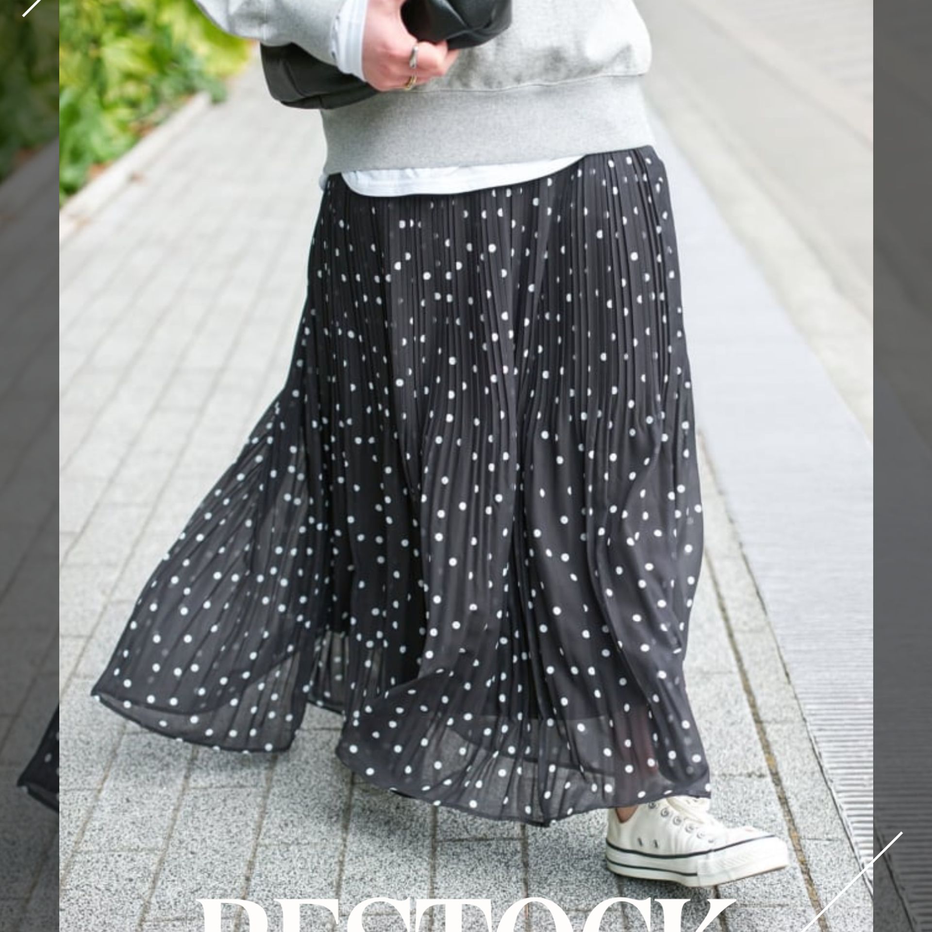 動くたびに表情が出る、軽やかなドットプリーツスカートが1/30(金)より再入荷!