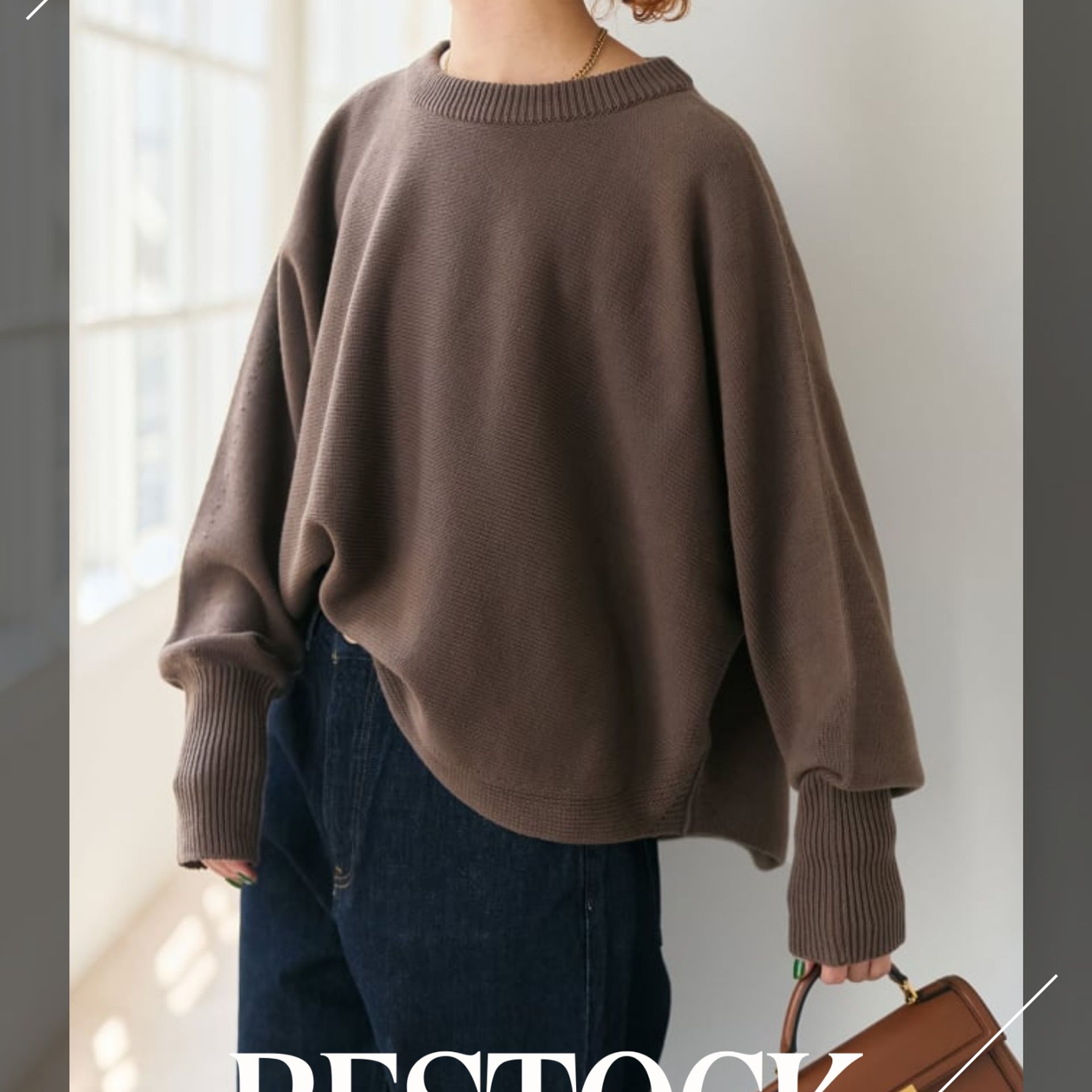 立体感のあるバルキーヤーンが魅力のドルマンニット。