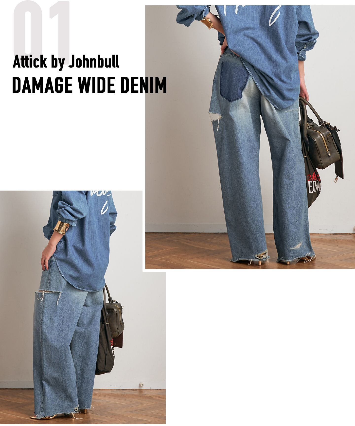 【Attick by Johnbull/アティック バイ ジョンブル】ダメージワイドデニム