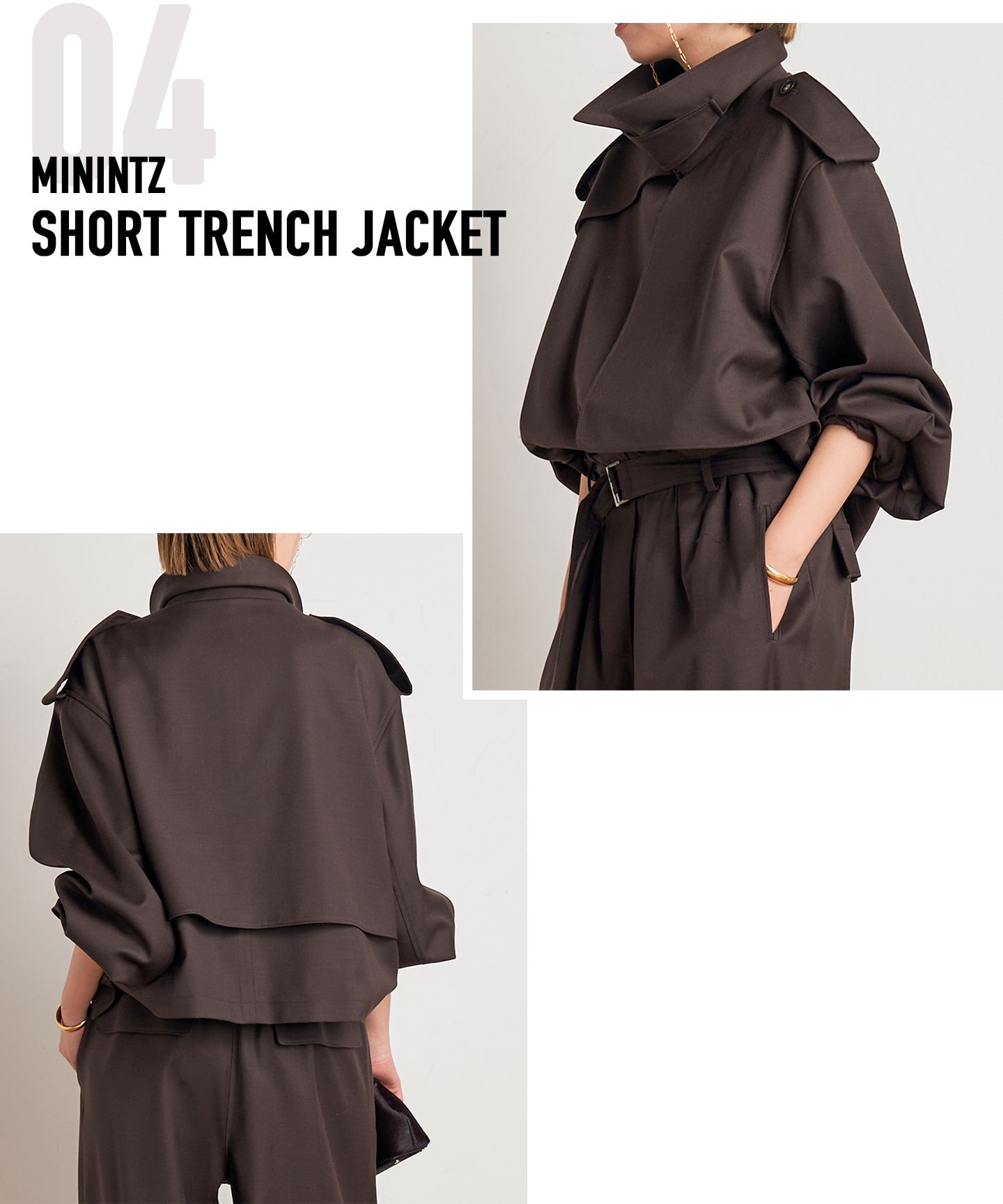 トレンチコートのディテールを残し、MINITZらしいミニマルさとモードさのあるエッセンを取り入れた一枚。