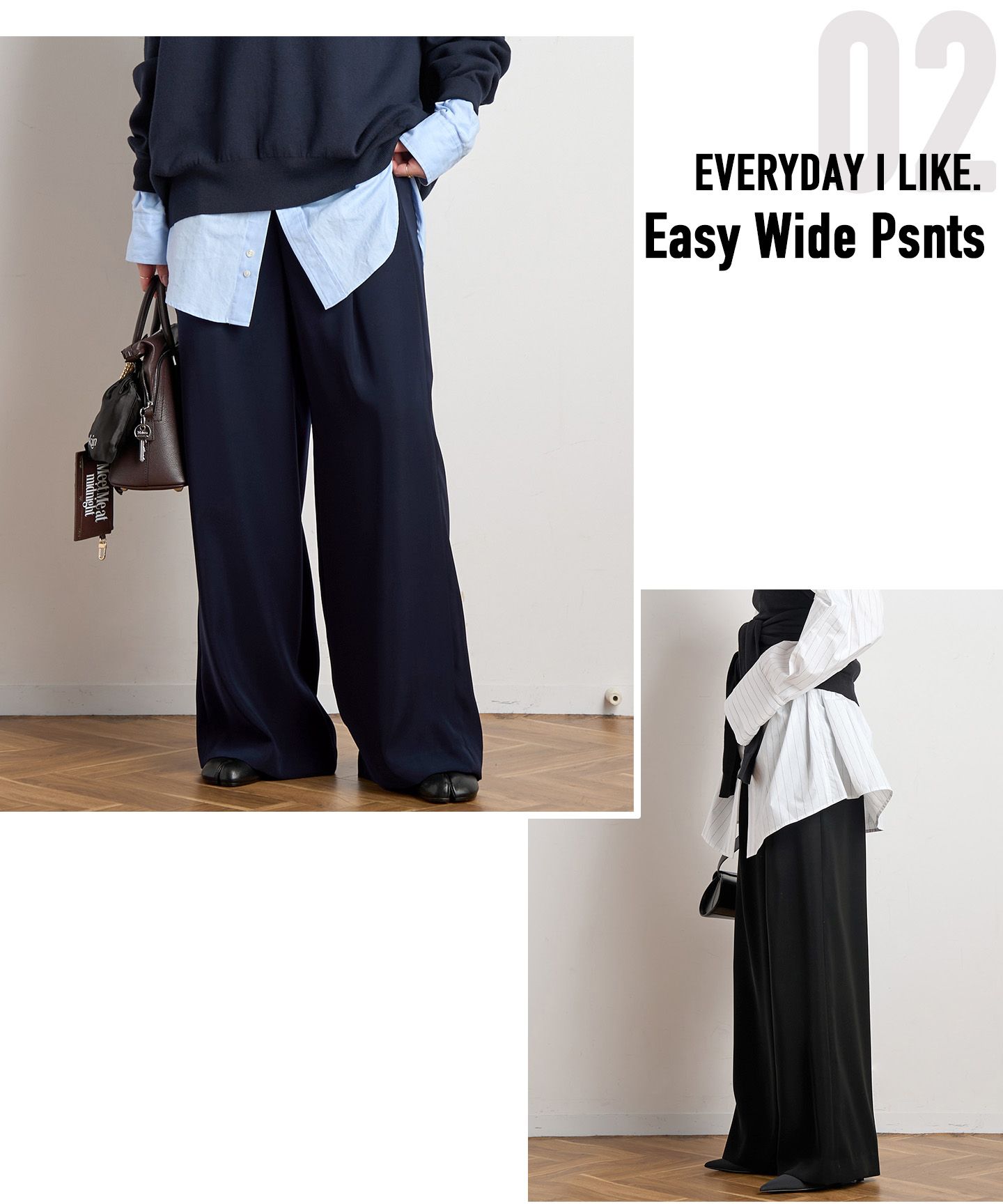 きちんと感と楽ちんさを両立させた「EVERYDAYILIKE.」のイージーワイドパンツ。