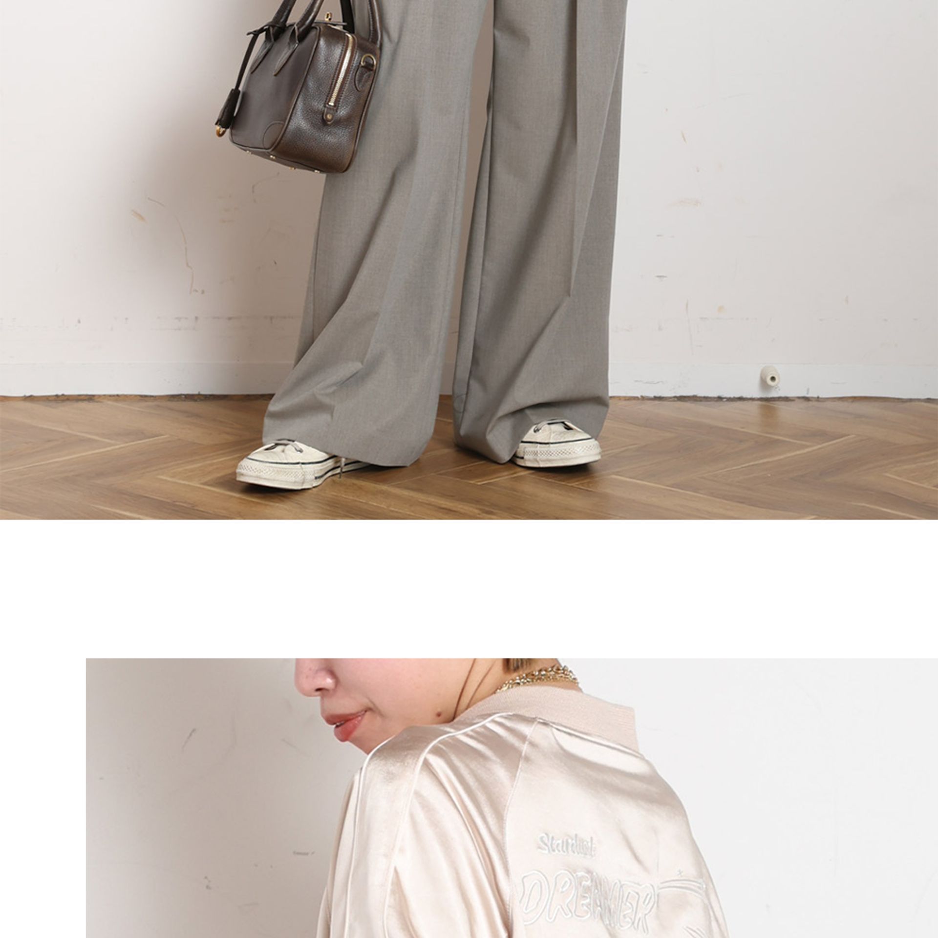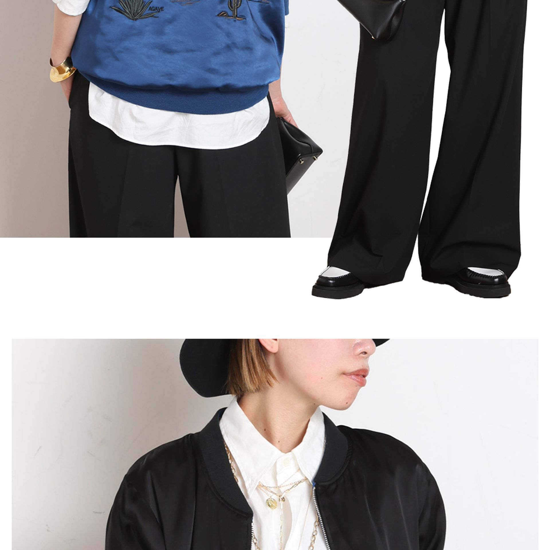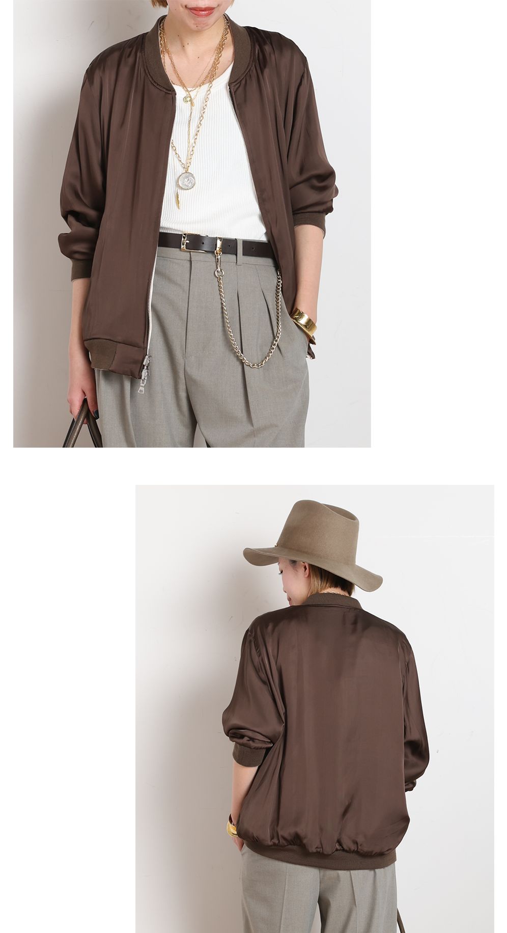 程よい光沢感がスタイリングのポイントになる、ドレスダウンにぴったりな大人のサテンブルゾン。