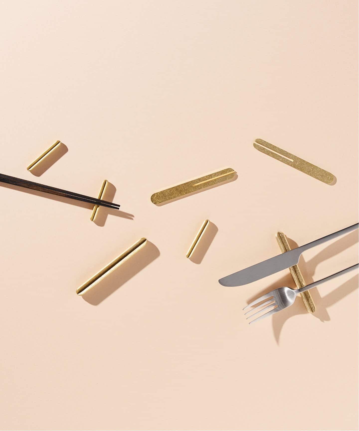 安定感のあるミニマルなデザインの真鍮製カトラリーレストです。
