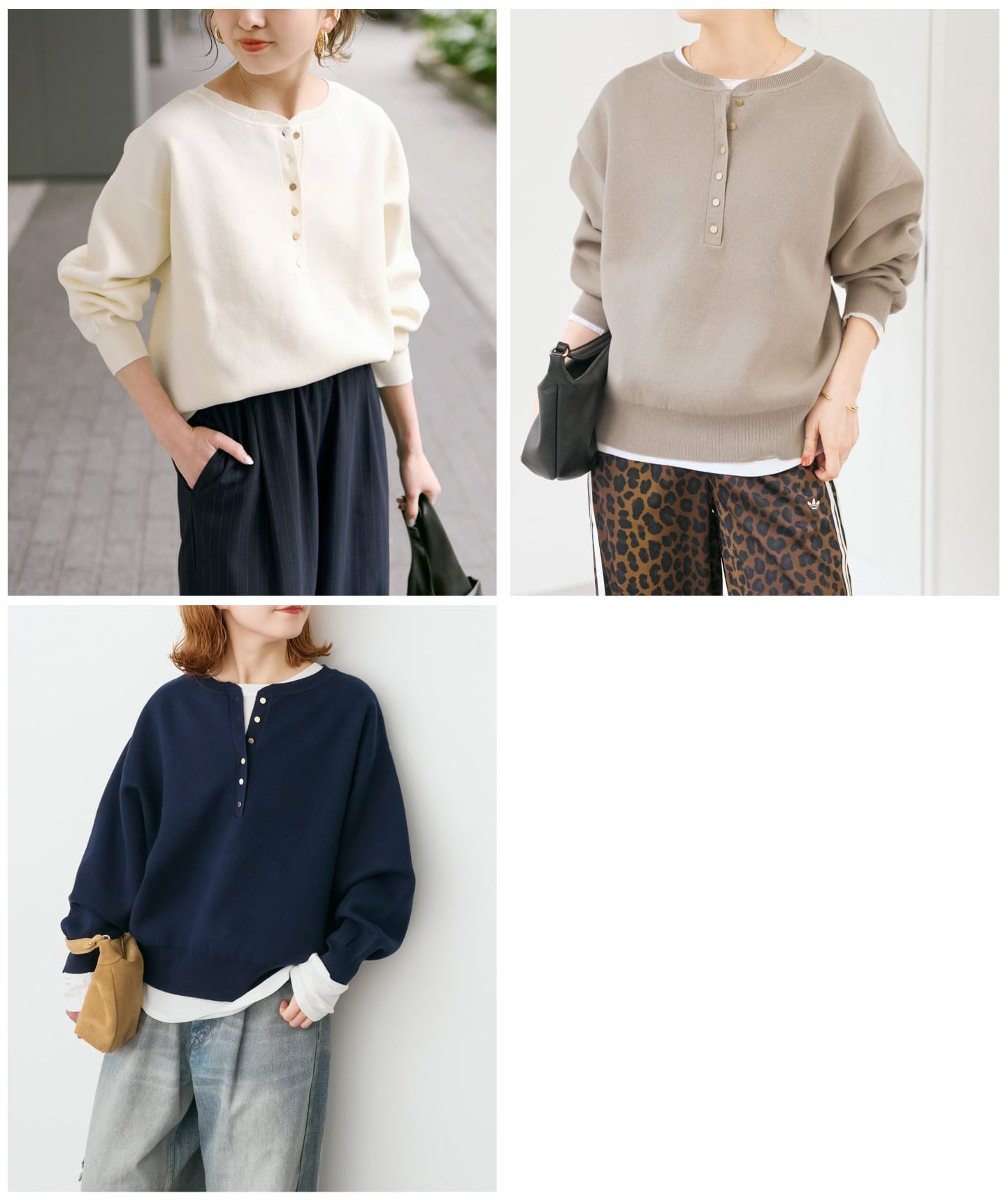 メタルボタンヘンリーネックニット