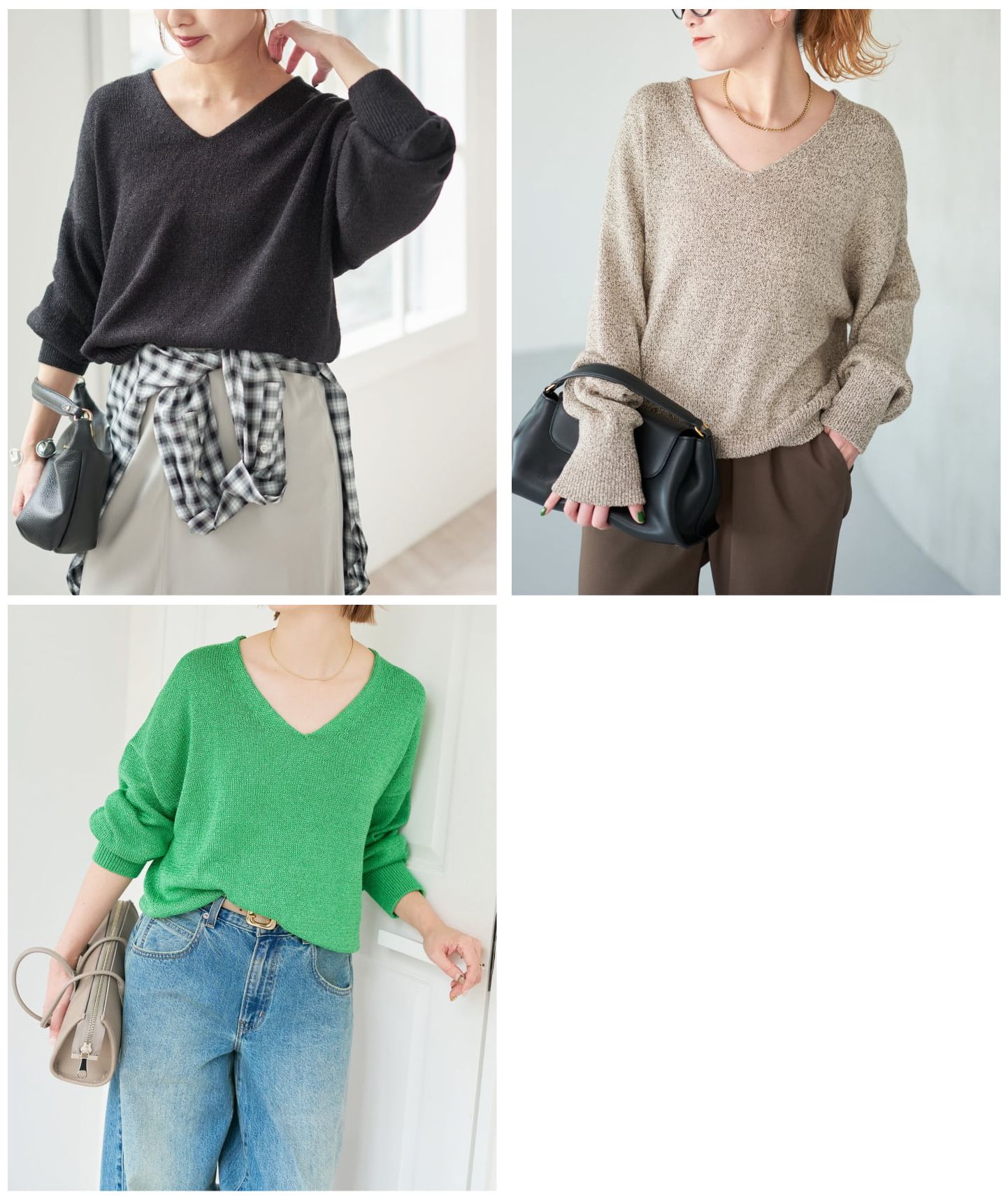 レーヨンペーパーヤーンVネックプルオーバー