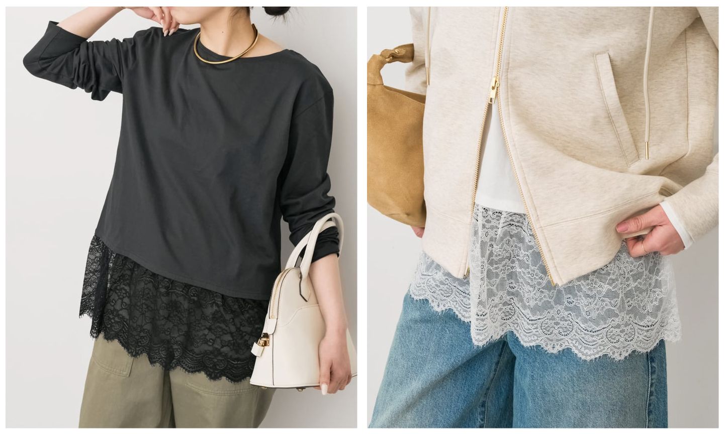 レースドッキングレイヤードカットソー
