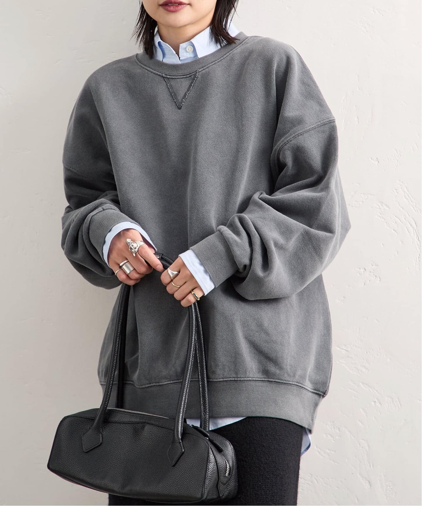 シンプルでゆとりのあるサイズ感のスウェット。