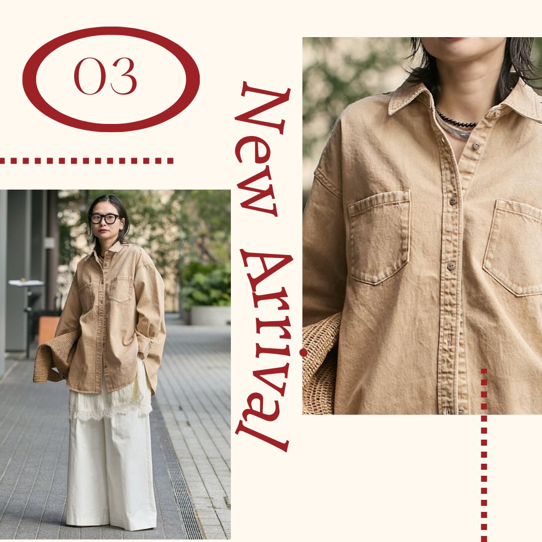 程よいゆとりのあるシルエットで、1枚でも羽織りとしても使いやすい万能アイテムです。