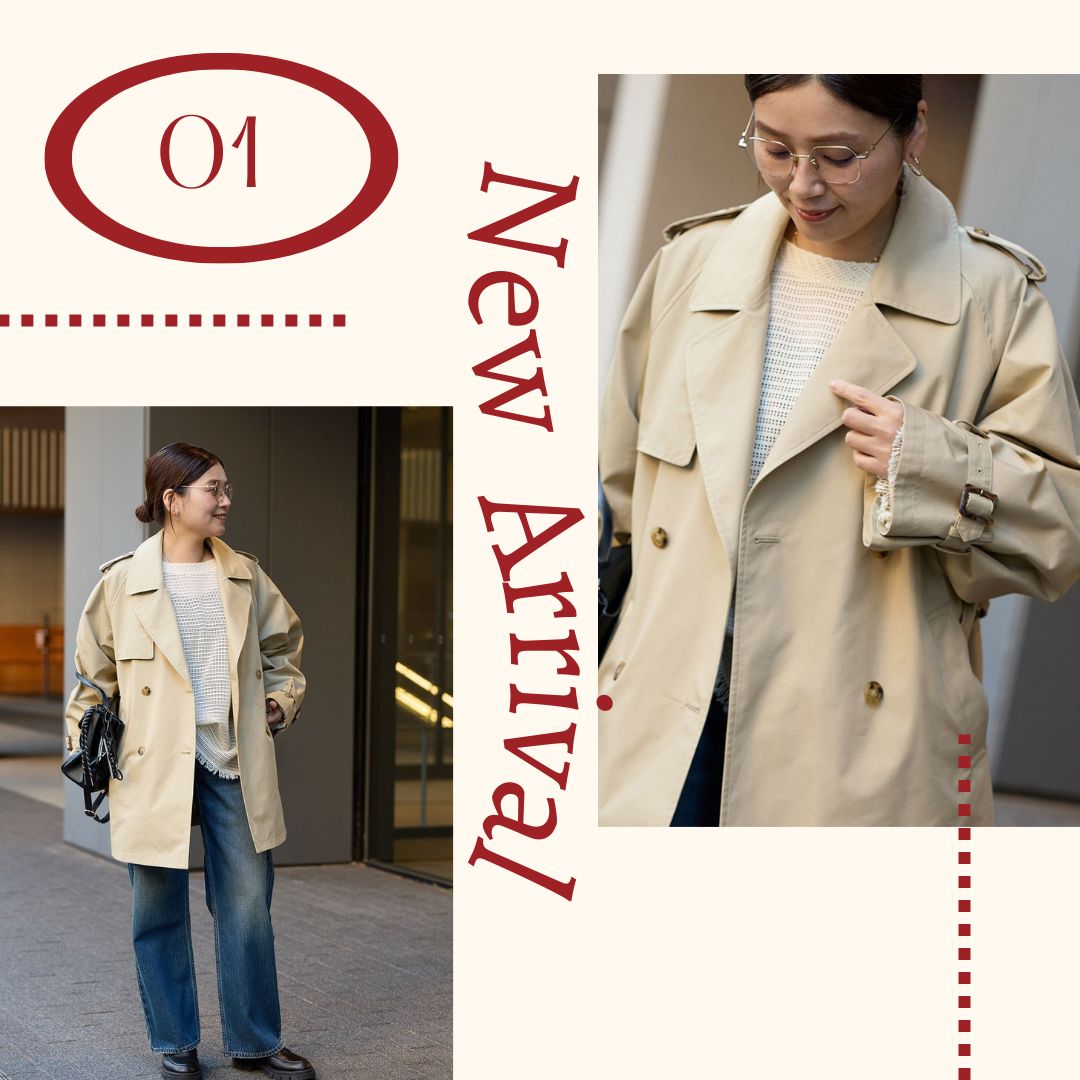ベーシックなトレンチとは違い袖や身頃にもボリュームを持たせ羽織るだけでこなれ感の出る女性らしいシルエットの1着。