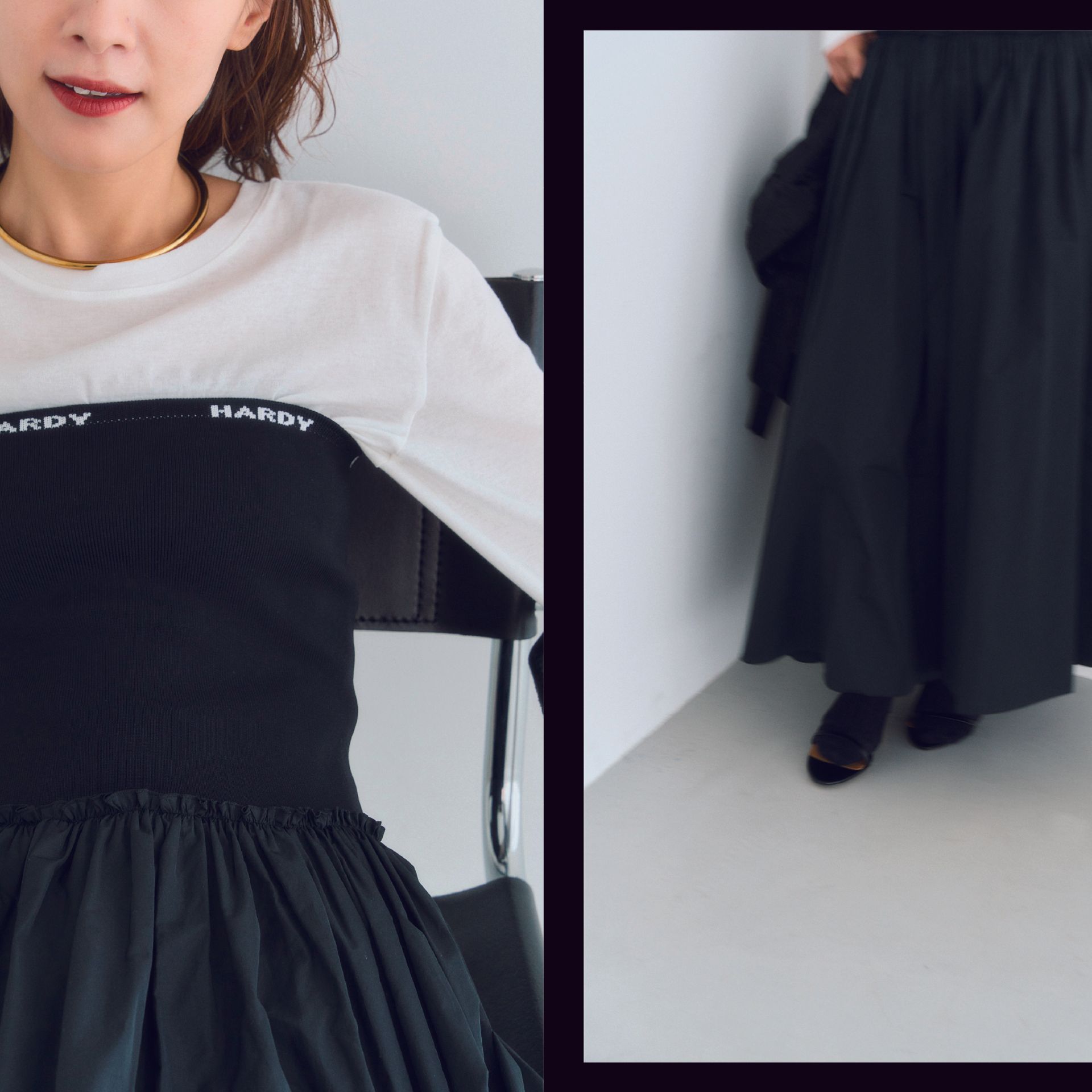 HARDY NOIRで大人気のタフタウエストリブスカート。