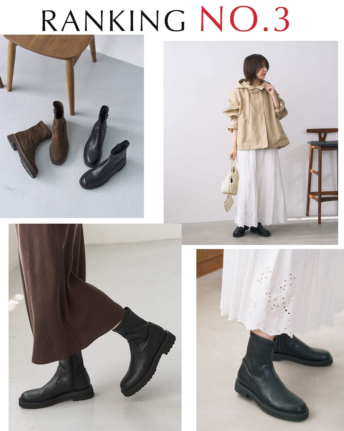 パンツからさりげなくのぞかせてラフに合わせても、ワンピースなどのきれいめスタイルにも◎幅広いコーディネートに取り入れやすい大人気ブーツ!軽い雨の日OKの仕様で今から買っても大活躍間違いなし!