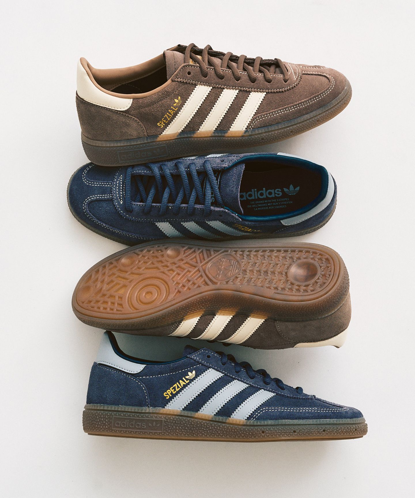 ハンドボールシューズをベースにしたSPEZIALは、丸みのあるフォルムとガムソールが特徴的なモデル。一見すると少しクセがあるようで、履いてみると驚くほどスタイルに馴染みます。シンプルな装いの中で、足元にだけ奥行きを持たせたいときにちょうどいい存在。控えめながら、確かな個性を感じさせる一足です。