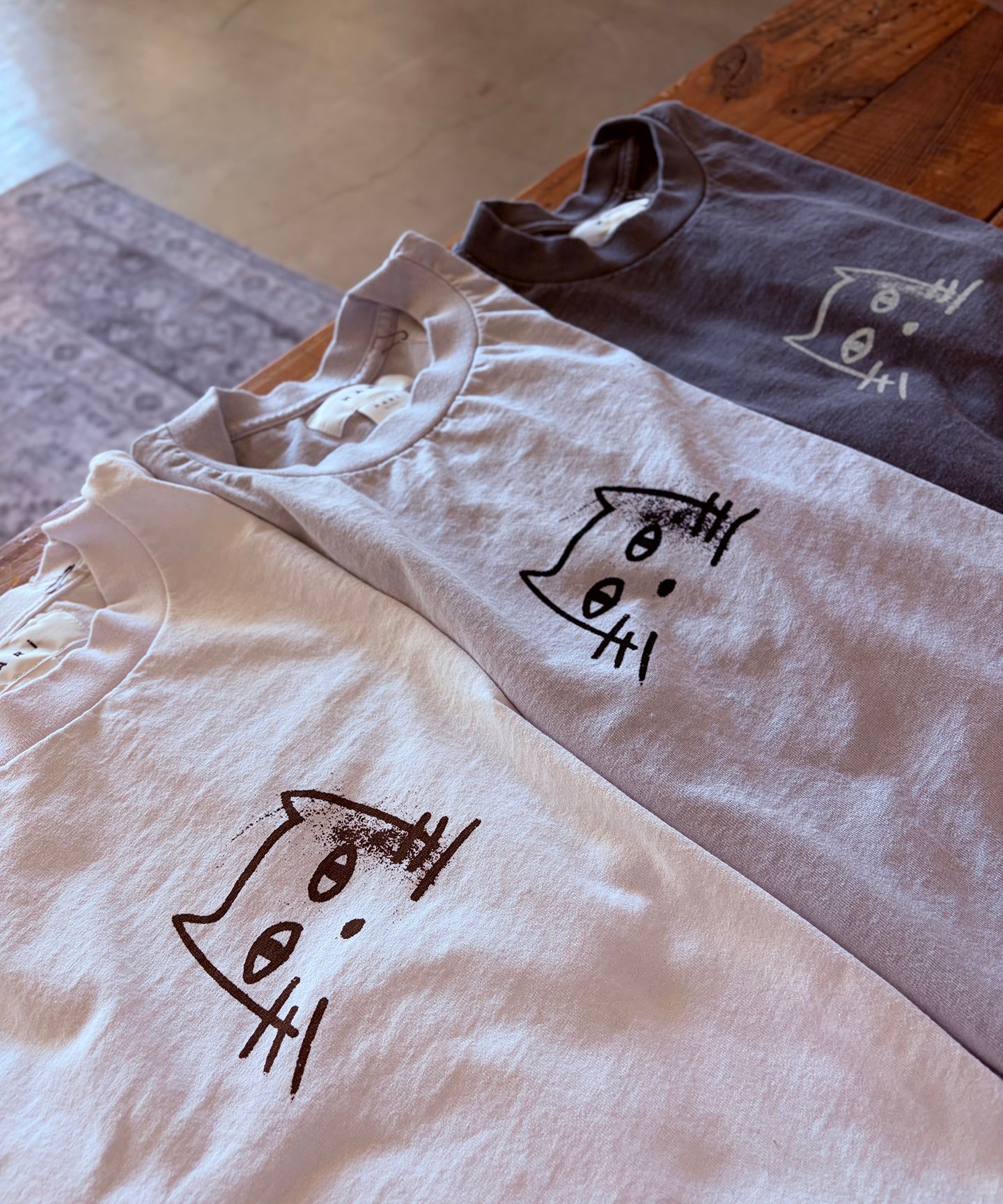 岡山の加工工場で染色加工を行い、ヴィンテージライクな表情に仕上げました。ホワイト・グレー・ブラックの3色展開で、デイリーに使いやすいアイテムです。