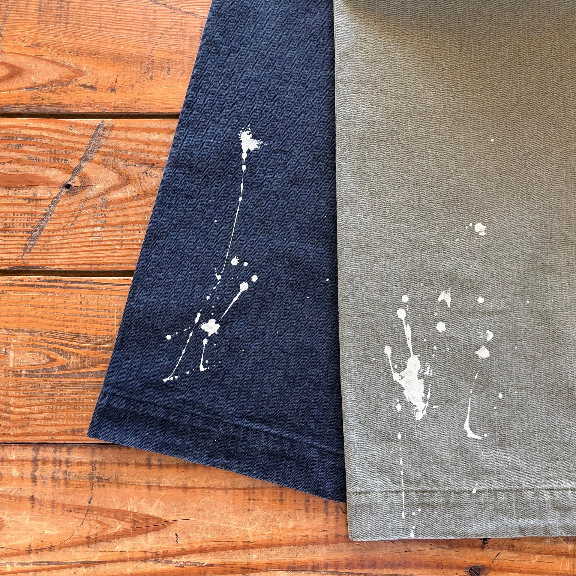ポイントは全体に飛んだペンキのペイント。HARiのデザイナーが一点一点、手作業にてペイントを施しました。