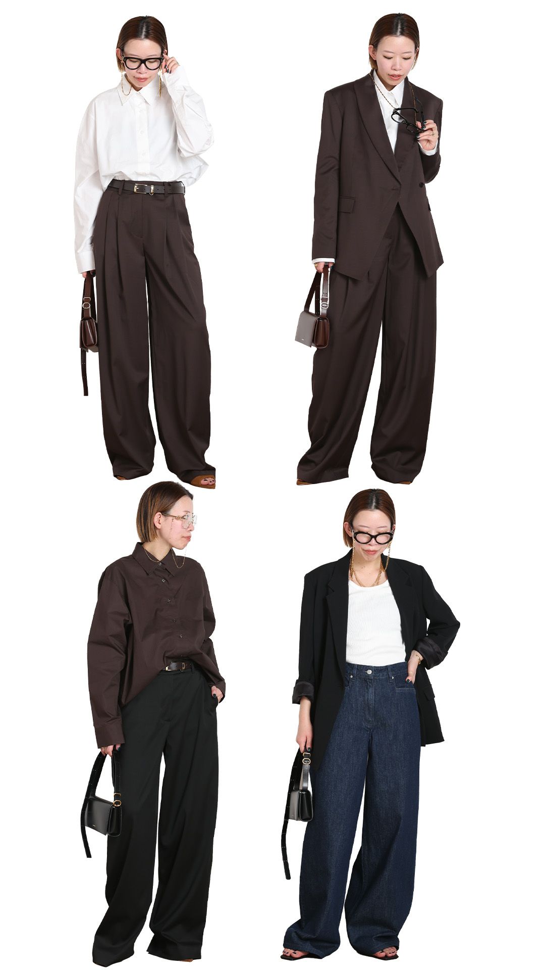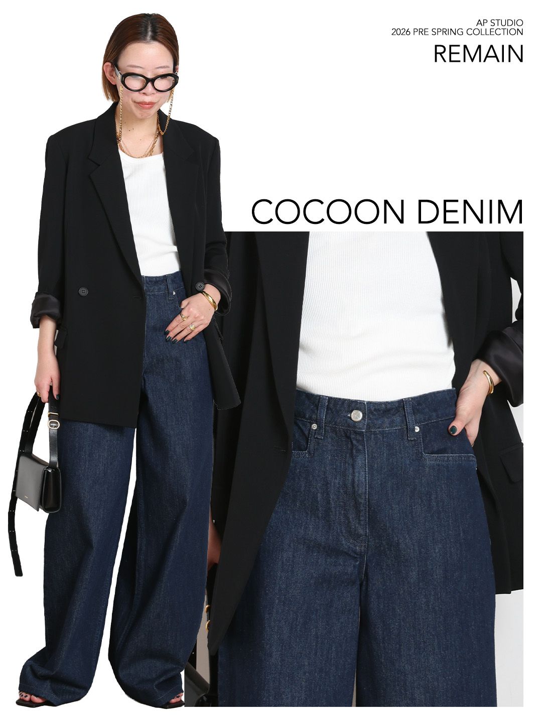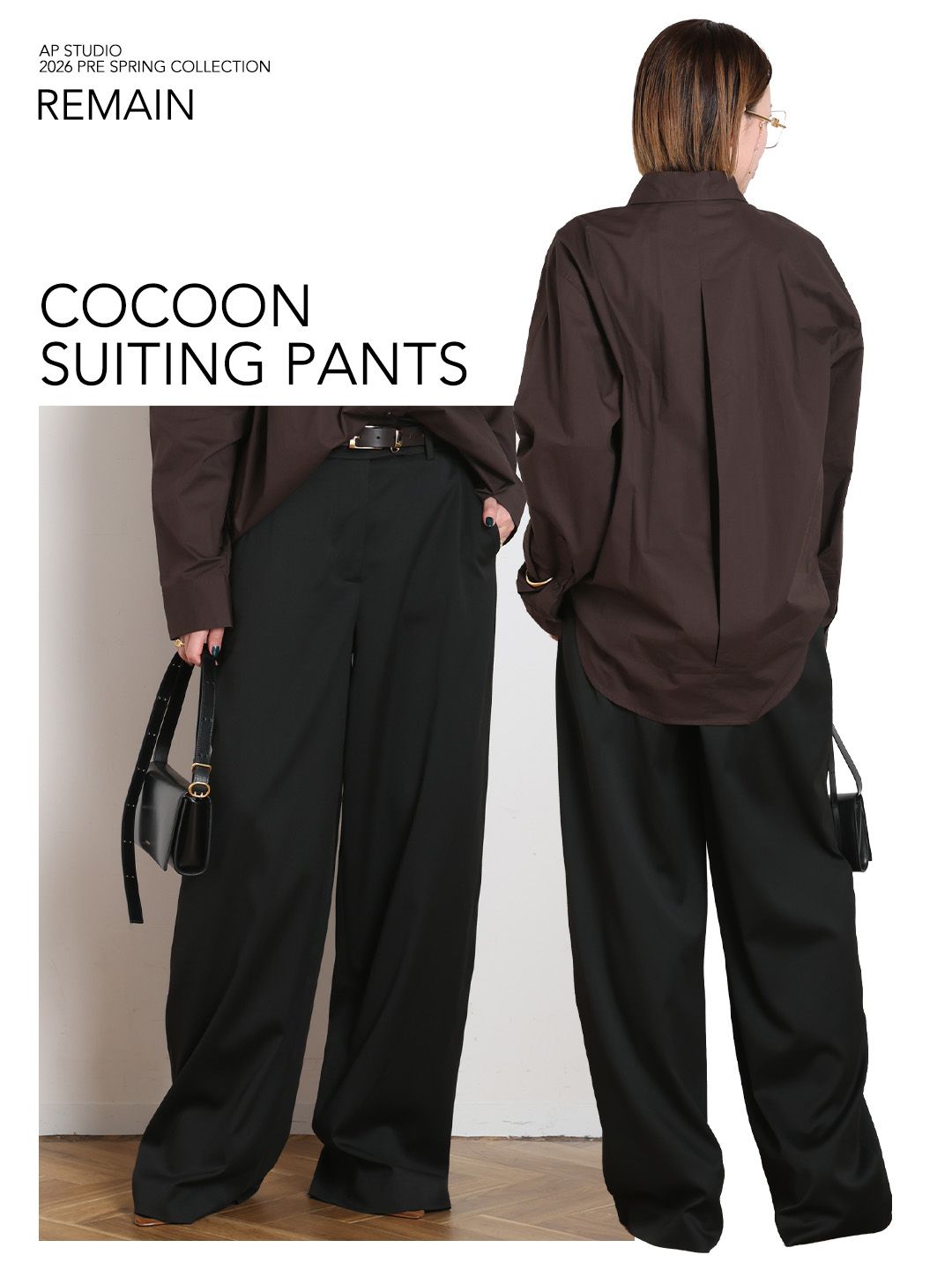 丸みのあるコクーンシルエットに、落ち感のある素材でエフォートレスな履き心地。