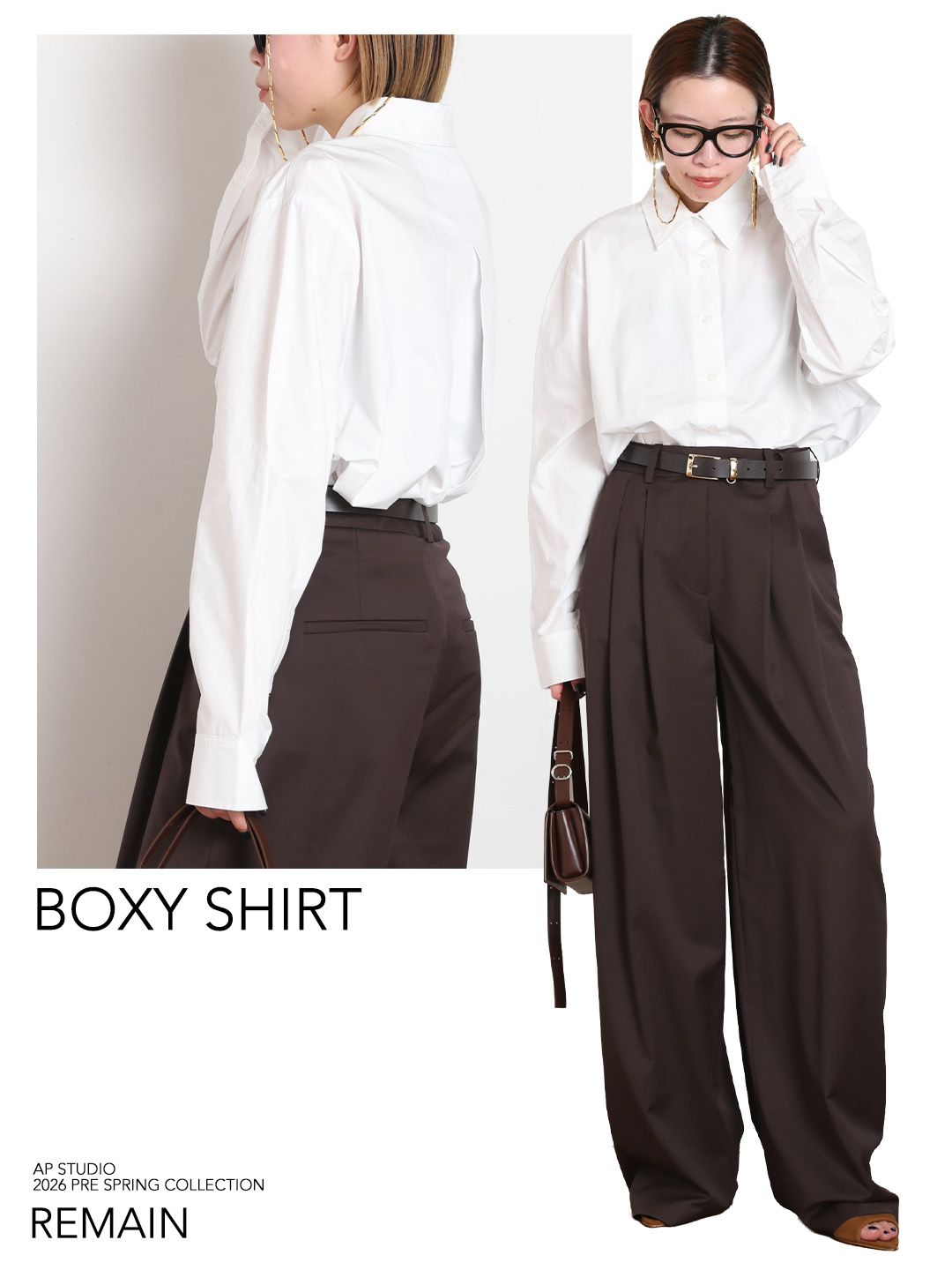 程よくハリのあるポプリン素材でゆとりのあるボックスシルエットのシャツ。