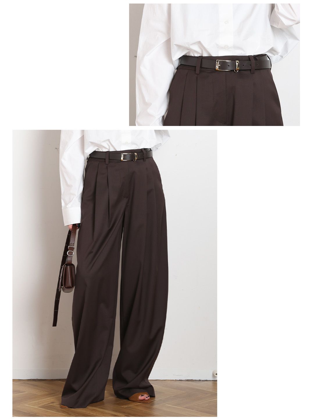 セットアップのパンツはタックの入ったゆとりのあるデザイン。